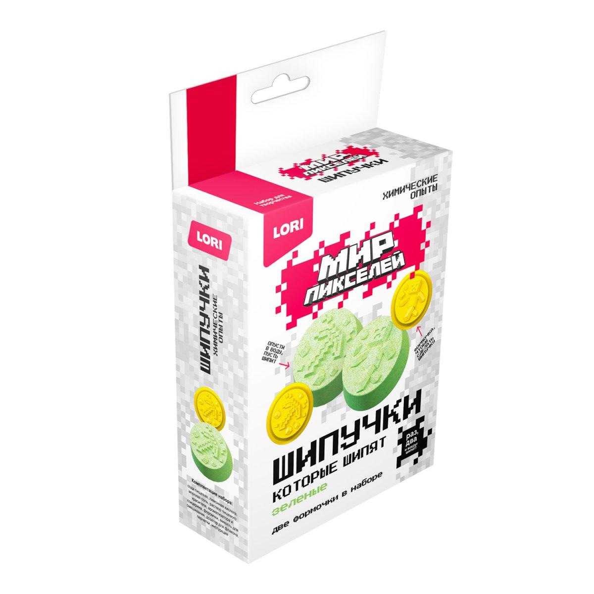 Набор для опытов LORI Химические опыты Шипучки МирПикселей зеленые (картонная упаковка с европодвесом)Марка/Производитель: LORI  Комплектация: Сода пищевая, лимонная кислота, морская соль, раствор пищевого красителя, ароматизатора и глицерина, формочки, емкость для смешивания, дозатор для флакона, перчатки, инструкция. |