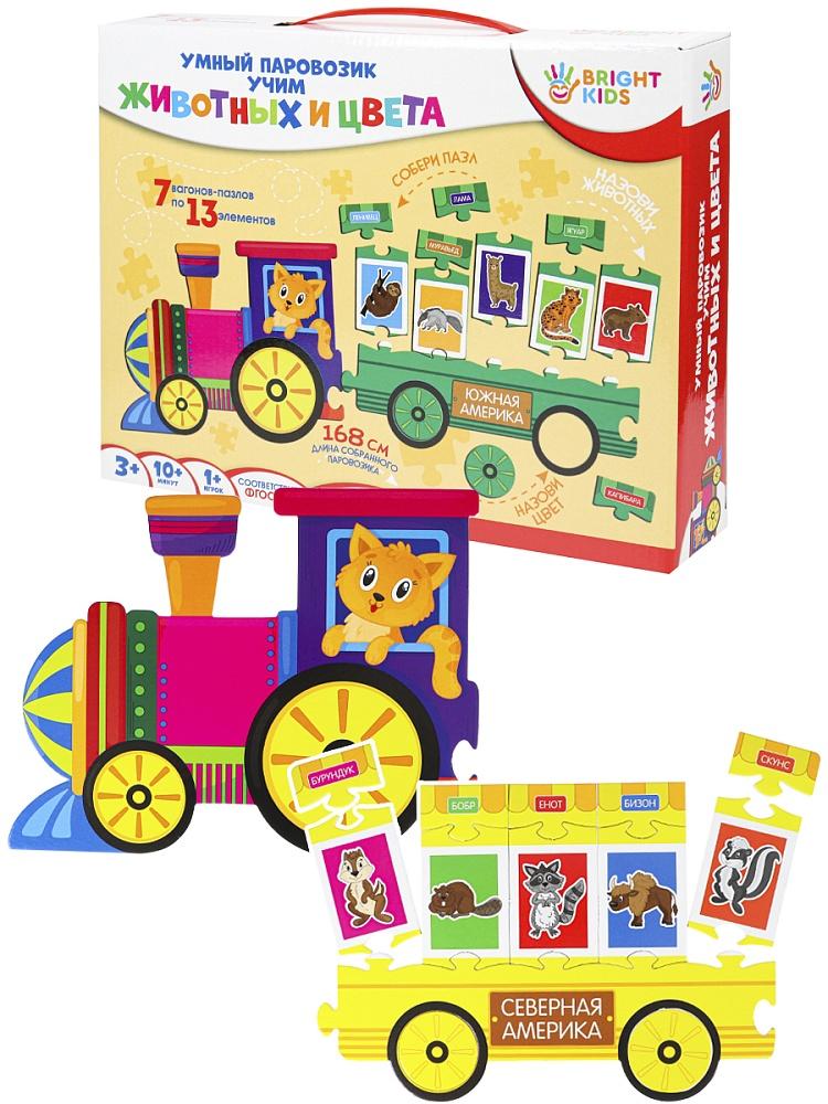 Игрушка развивающая (РЫЖИЙ КОТ) BRIGHT KIDS Умный паровозик Учим животн и цвета (картонная упаковка)  Умный паровозик "Учим жвотных и цвета" - это уникальная развивающая игра, которая не оставит равнодушным ни одного ребенка. Этот развивающий набор предлагает ребёнку выучить разновидности диких животных и континенты, тем самым помогая развить память, внимательность, усидчивость, мелкую моторику и цветовое восприятие. |