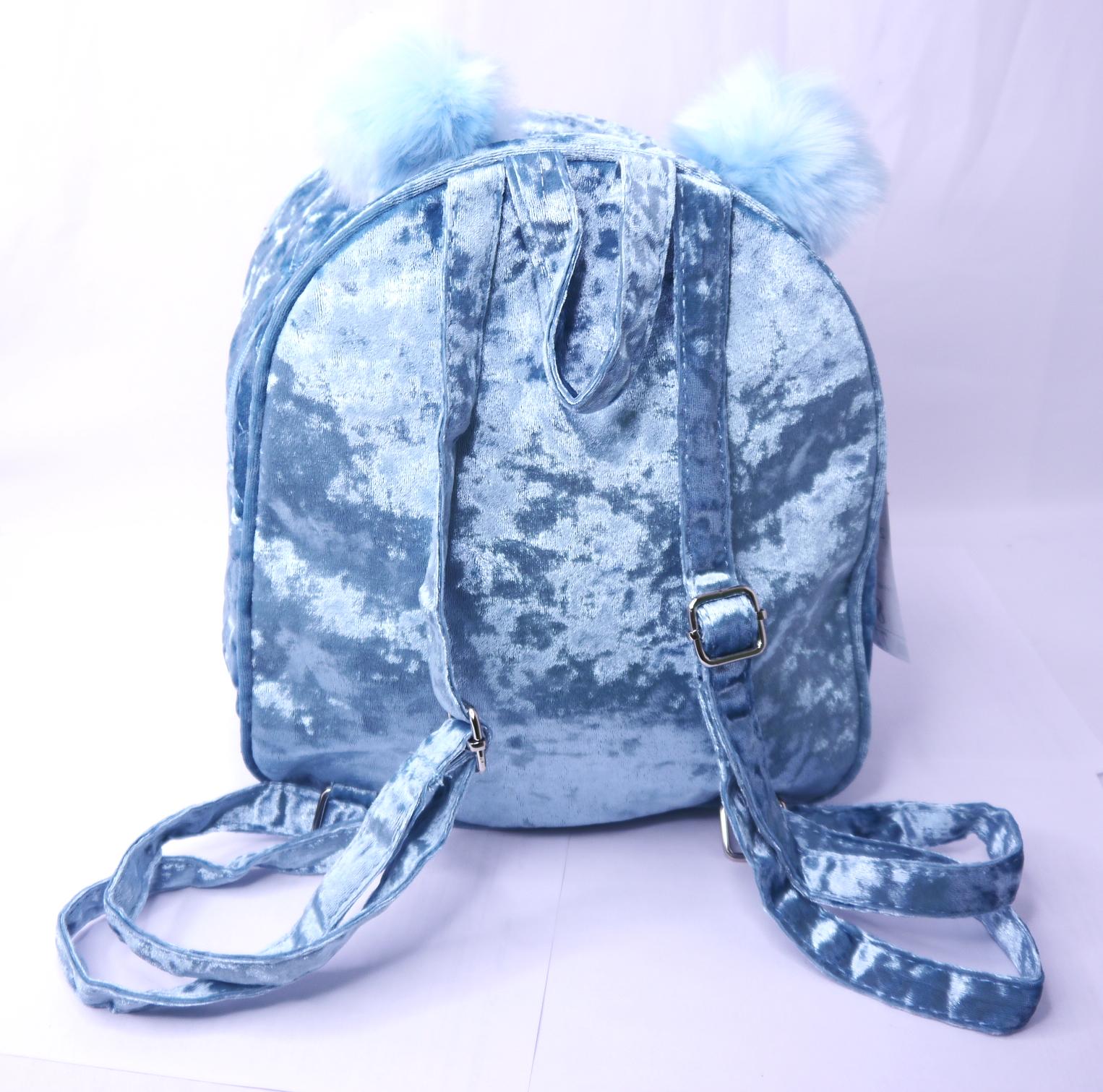 | Рюкзачок INTELLIGENT 27см с мех ушками плюш стег стразы голубой (п/упаковка)  Каждая маленькая модница мечтает получить удобный плюшевый рюкзачок, с которым можно ходить в гости, в магазин или просто прогуляться на улице. Одно отделение намолнии. Накладной карман на молнии + 2 помпона. |