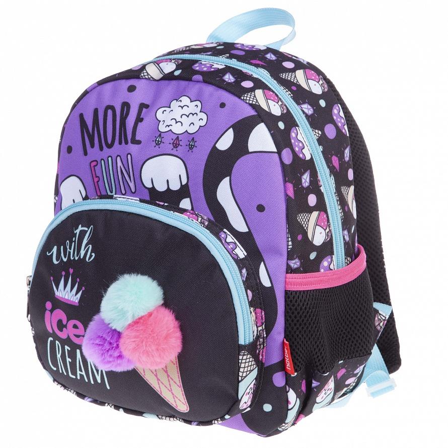 | | Рюкзачок (ХАТБЕР) 27см Ice cream (со светоотражающими элементами) черный/фиолетовый (п/упаковка)  Рюкзак Kids отлично подходит для школьников. Выполнен из высококачественного полиэстера с водоотталкивающим покрытием. Эргономичная вентилируемая спинка с мягкими вставками, регулируемые лямки, светоотражающие элементы, ручка для подвешивания. Два боковых кармана и вместительный передний карман на молнии позволяют разместить ребенку все необходимое. Объем: 7л. Размер: 27х23х11 см. Упаковка: индивидуальная в пакет. |