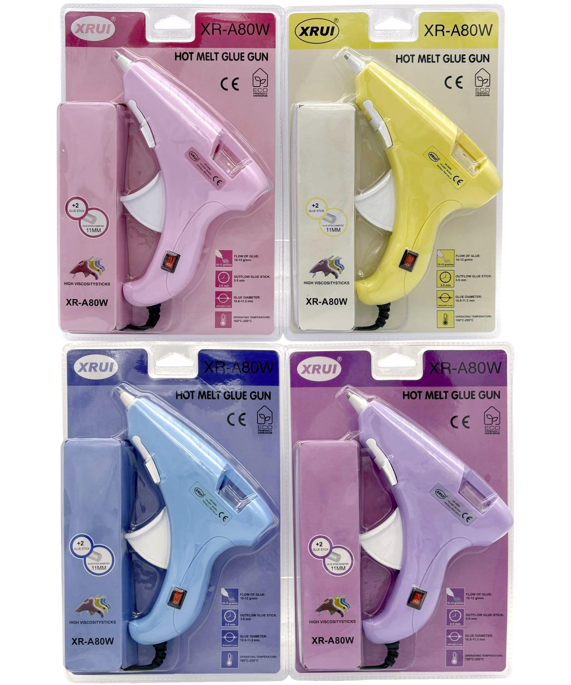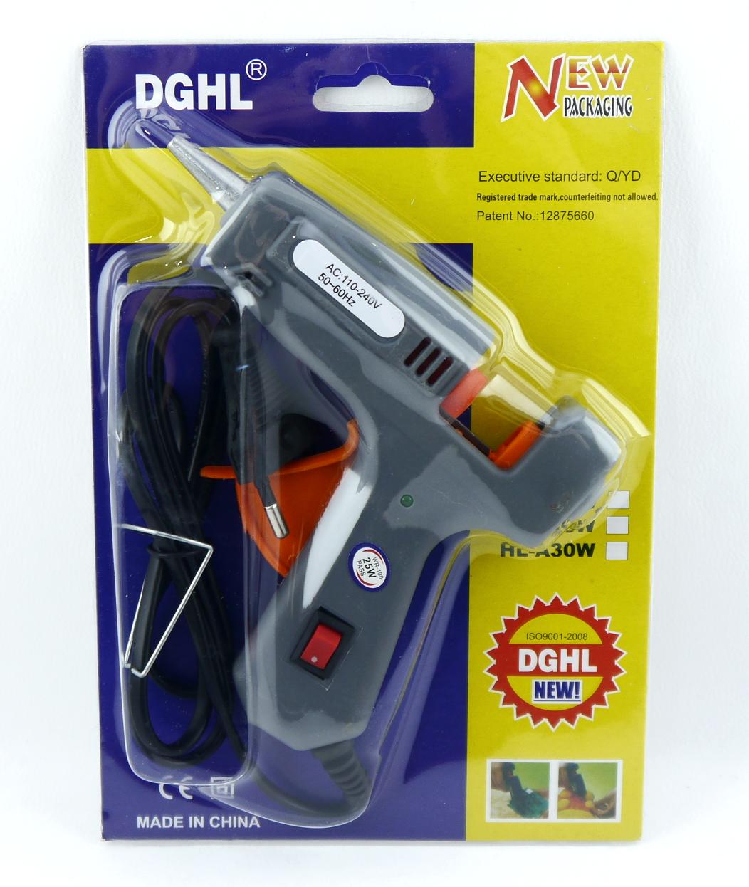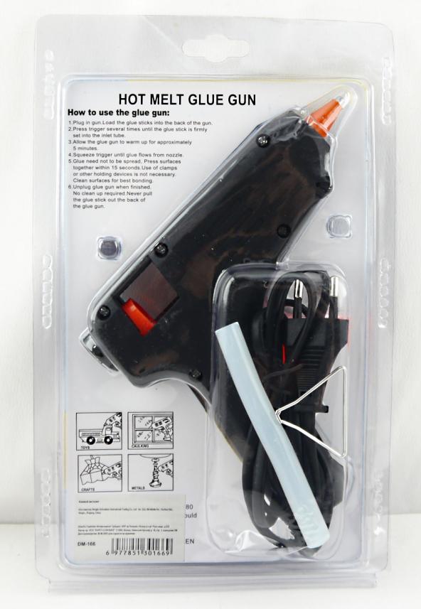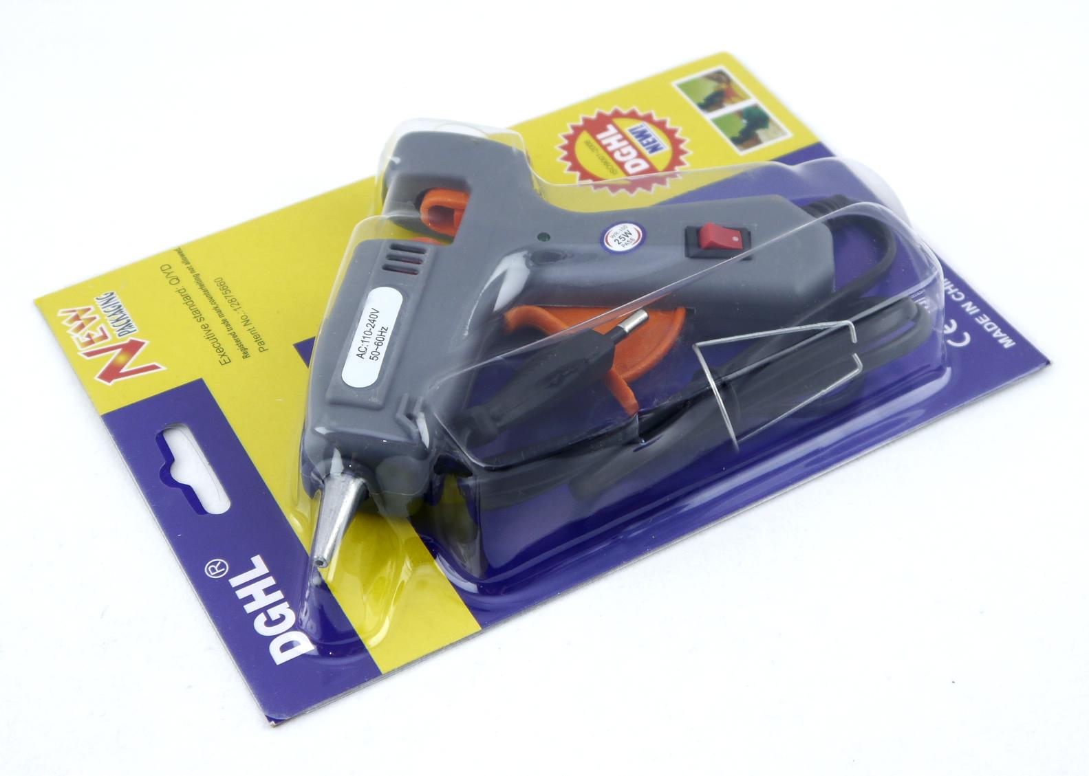 | Материалы для творчества Клеевой пистолет 7мм КИТ 30 Вт +2стержня (п/упаковка с европодвесом) Ассорти XR-D30W  Клеевой пистолет - это прибор, который плавит и подаёт жидкий клей. С его помощью можно склеивать различные материалы, чинить вазы или создавать предметы мебели, герметизировать стыки и заливать неширокие швы, крепить лепнину на стены и выполнять другие операции. Это паяльнотермический инструмент простой конструкции, который используют для надежного соединения между поверхностями. Он замечательно соединяет бумагу, картон, метал, дерево, керамику, поролон, пенопласт, полипропилен, полиэтилен и др. материалы. Его применяют для соединения различных материалов, где требуется быстрое и экономное склеивание. |