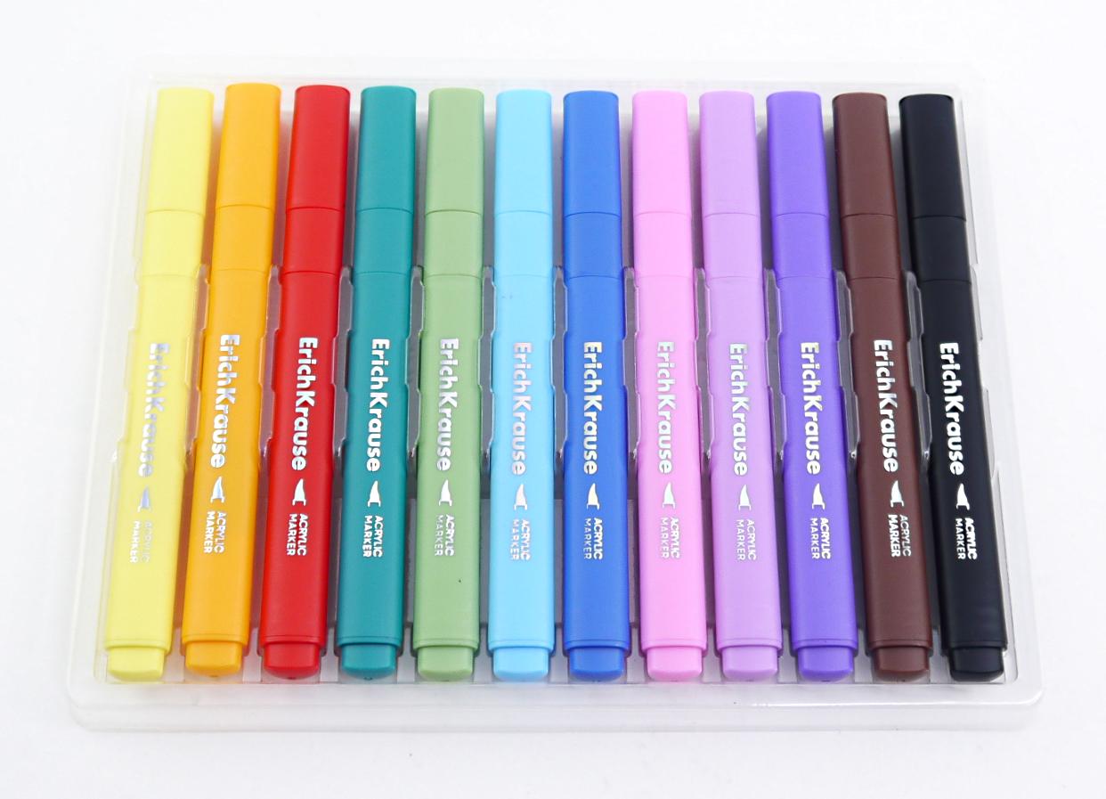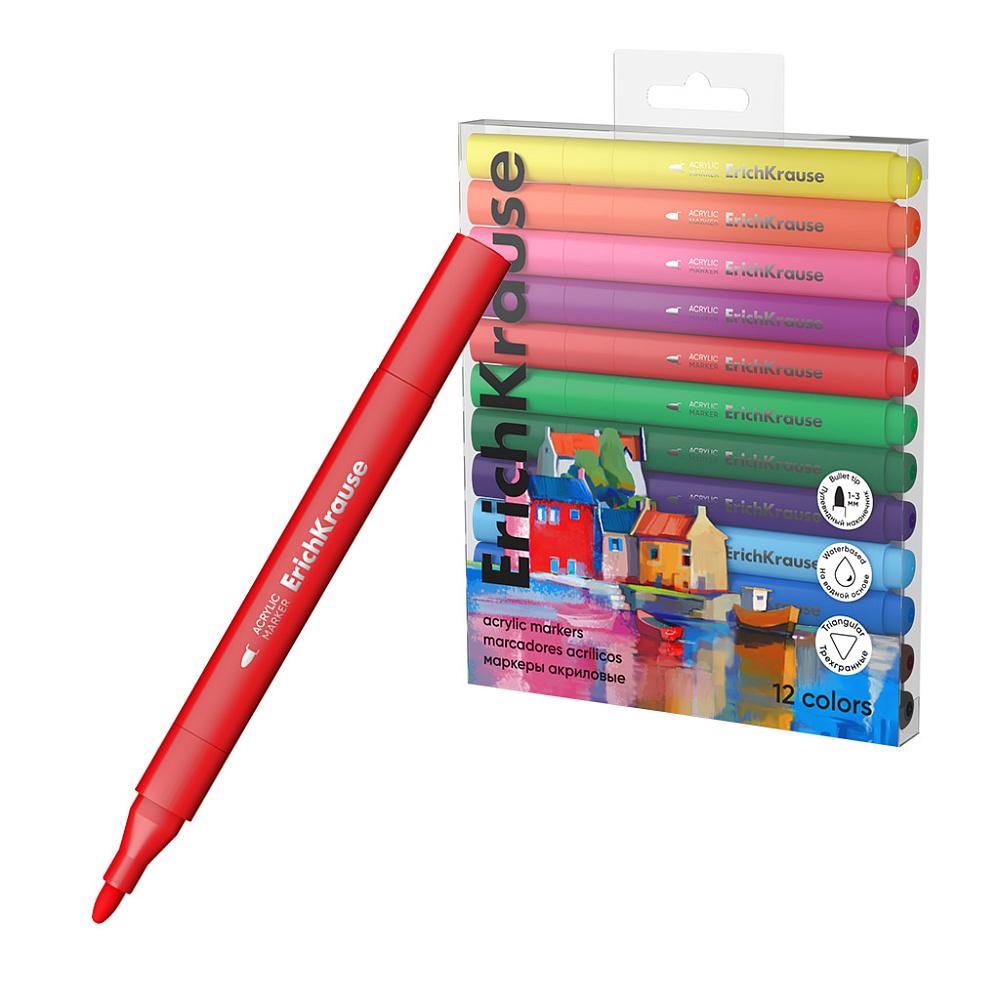 | Маркеры-кисти акрил набор ErichKrause 12 цветов Art Spirit 1-3мм (трехгранный корпус) (п/упаковка с европодвесом)  Акриловые маркеры на водной основе с наконечником кистью. Подходят для всех типов поверхностей: стекло, керамика, холст, бумага, пластик, дерево, камень. Идеальны для скетчинга и декорирования. |