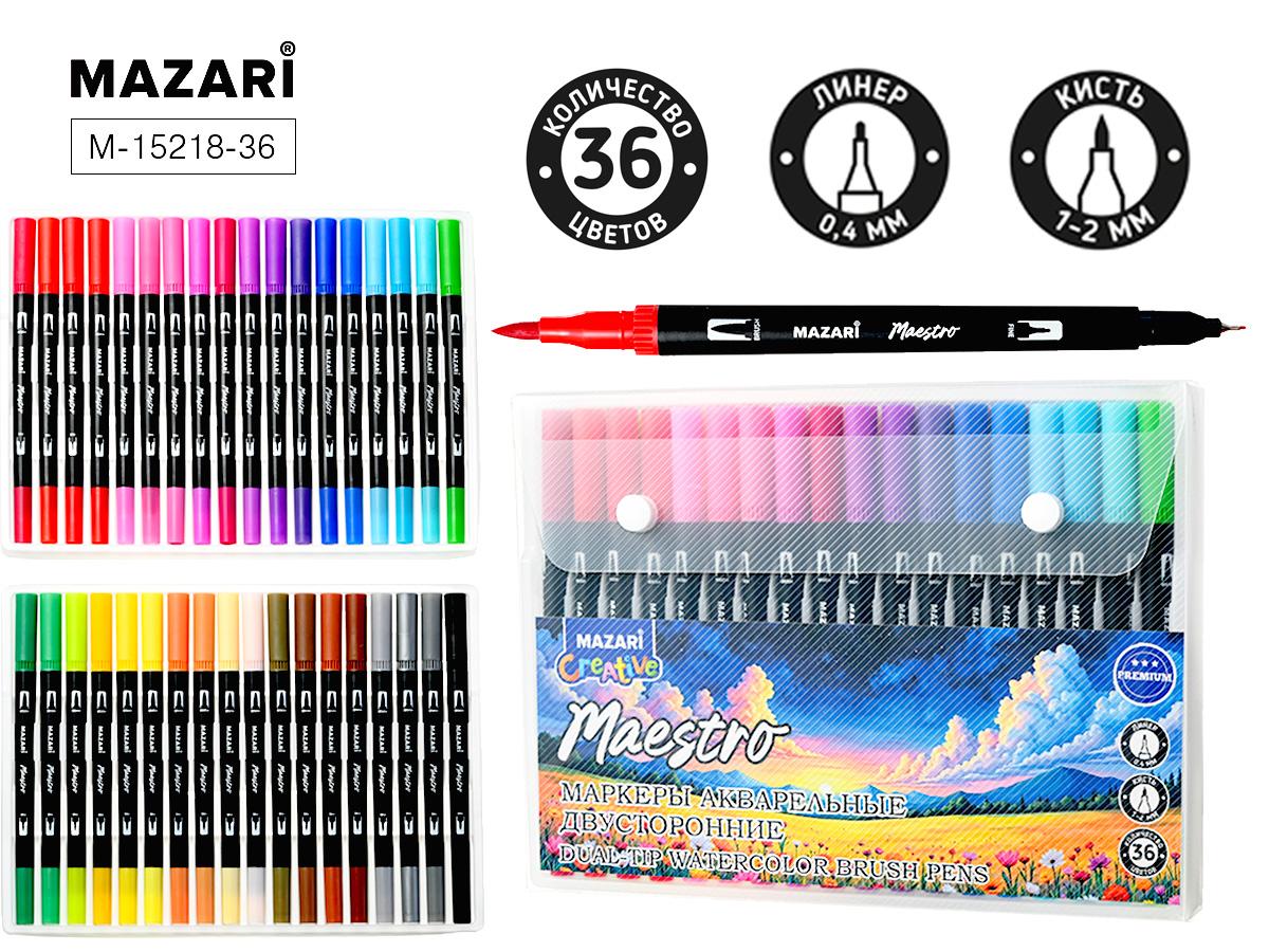 | | Маркер акварельный двусторонний художественный для скетчинга 36 цветов MAZARI Maestro черн (круглый корпус) (п/упаковка)  Набор маркеров акварельных, двусторонние, MAESTRO, 36 цветов, наконечники: кисть и файнлайнер, пластиковый корпус, ПВХ- упаковка с европодвесом Специальные маркеры для скетчинга - это профессиональная альтернатива фломастерам. Они предназначены для рисования скетчей, то есть быстрых набросков. Разные оттенки легко смешиваются между собой, что позволяет создавать яркие и реалистичные картинки. Поэтому работать с ними очень удобно. Хранить маркеры рекомендуется только в горизонтальном состоянии, особенно актуально для маркеров с двойным наконечником, что обеспечит равномерное поступление чернил в оба наконечника. Это идеальный инструмент для иллюстраторов, студентов и всех, увлекающихся творчеством. Используется для создания скетчей, манга, комиксов, скрапбукинга, декоративных открыток и многого другого. Подходит для письма по большинству поверхностей: бумага, пластик, дерево, стекло. |