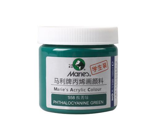 | | Краска акриловая MARIES 100мл глянцевая зеленая фталоцианин в банке