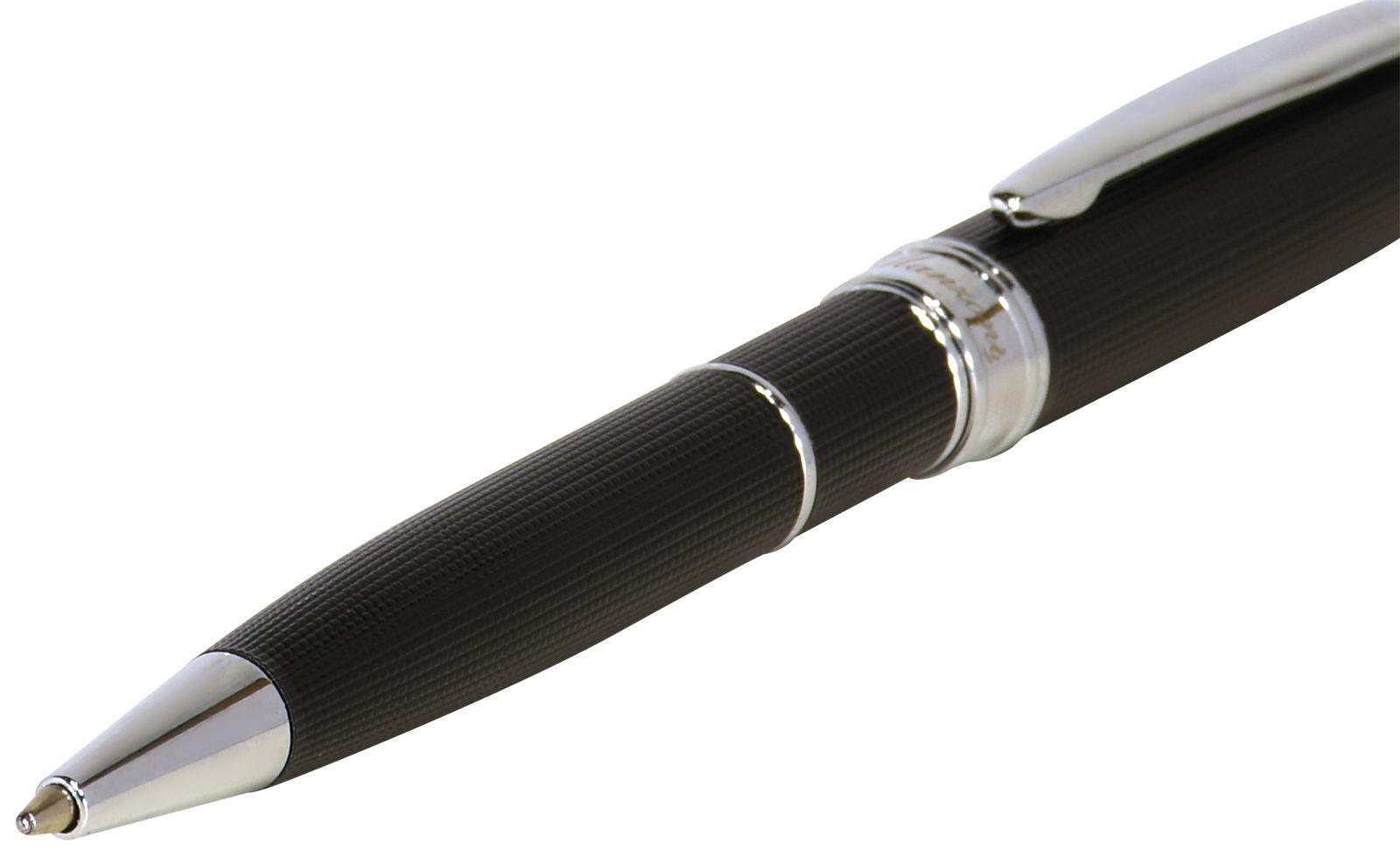 | | Ручка подарочная в футляре механическая (поворотная) MANZONI Verduno 1, 0мм металл (черный корпус с серебристыми элементами) син  Изысканная ручка Manzoni Pralormo собрана из качественных материалов, корпус металлический. Пишущий узел 1мм, длина стержня 98мм. Толщина линии письма, мм:0,50 Упаковка:футляр soft touch выдвижной "Фишка" товара:кожаный чехол |