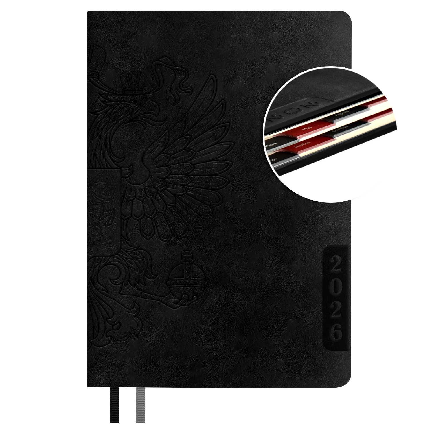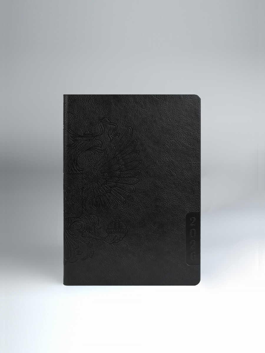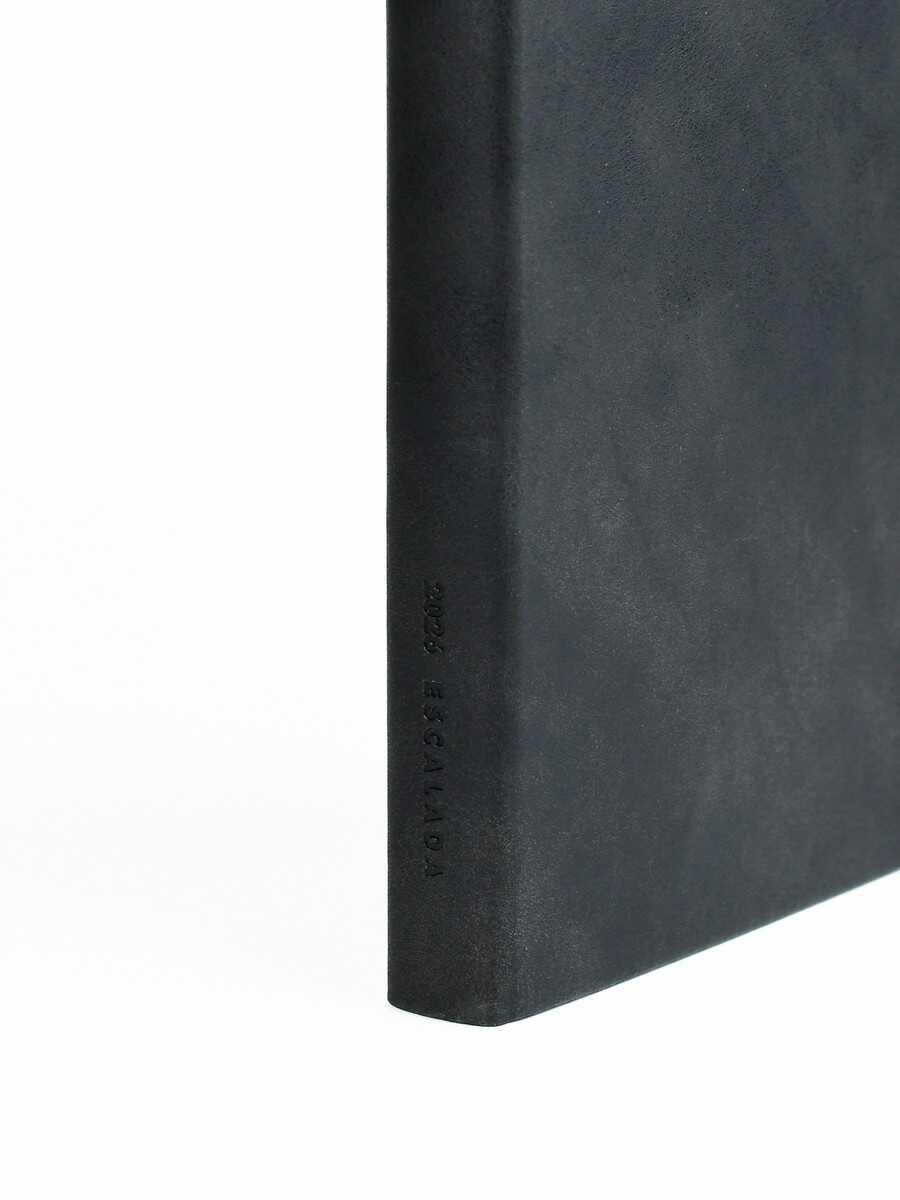 Ежедневник датированный на 2026год А5 кожзам (клетка) ( 352 страницы) (ФЕНИКС) (интегральная обложка) (тиснение фольгой) Лезер чер (п/упаковка)  Ежедневник датированный 2026 ESCALADA, А5, ЛЕЗЕРЕТТО ЧЁРНЫЙ (кожзам: 146x211 мм, мягкий переплёт, материал обложки: искусственная кожа "Лезеретто"; декор: тиснение фольгой, печать шелкографией в одну краску; способ крепления блока: ниткошвейный; вн. блок: 176 л., кремовый офсет 70 г/м?, печать в две краски (клетка), справочный материал: есть; перфорация углов блока: нет; отделка среза: окрашивание пантоном; закладка/-и: два ляссе; каптал: есть; форзац: печать пантоном; персонализация возможна: да; индивидуальная упаковка: промостикер + ПЭТ-пакет) |