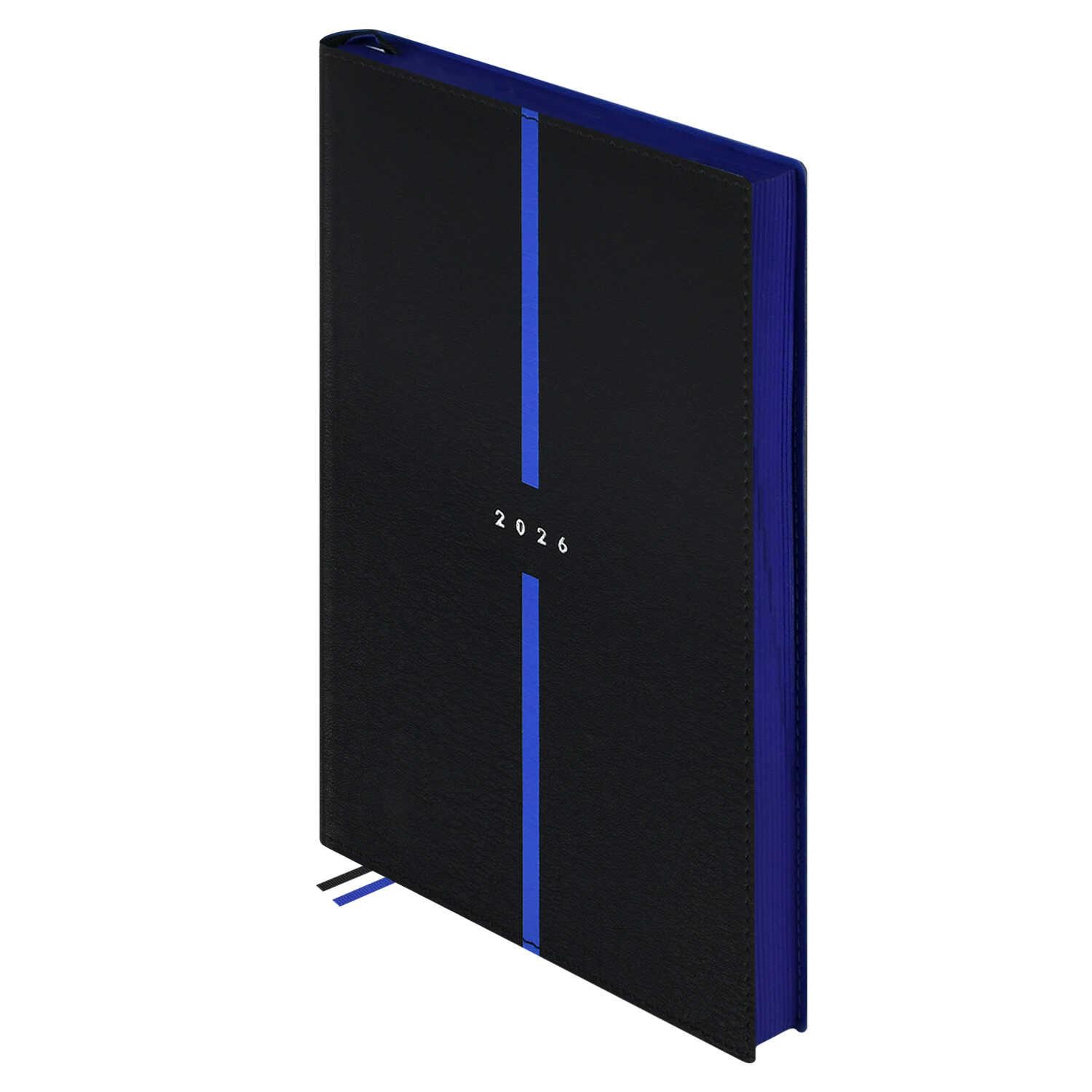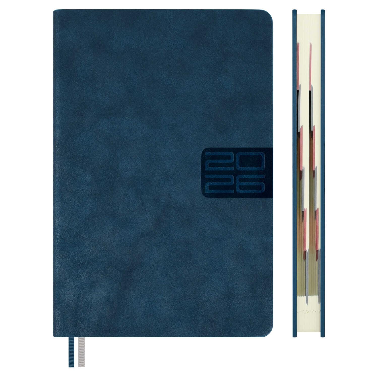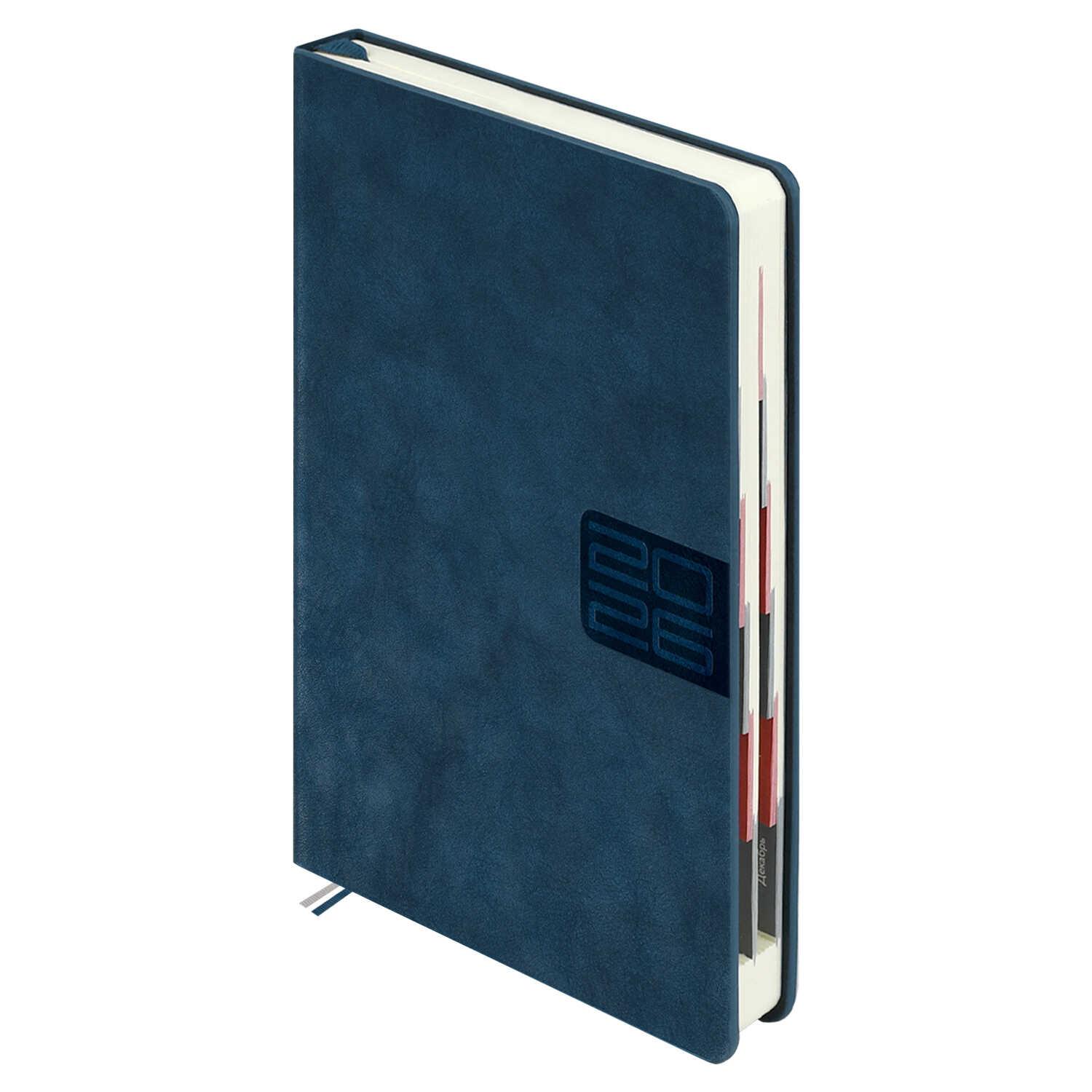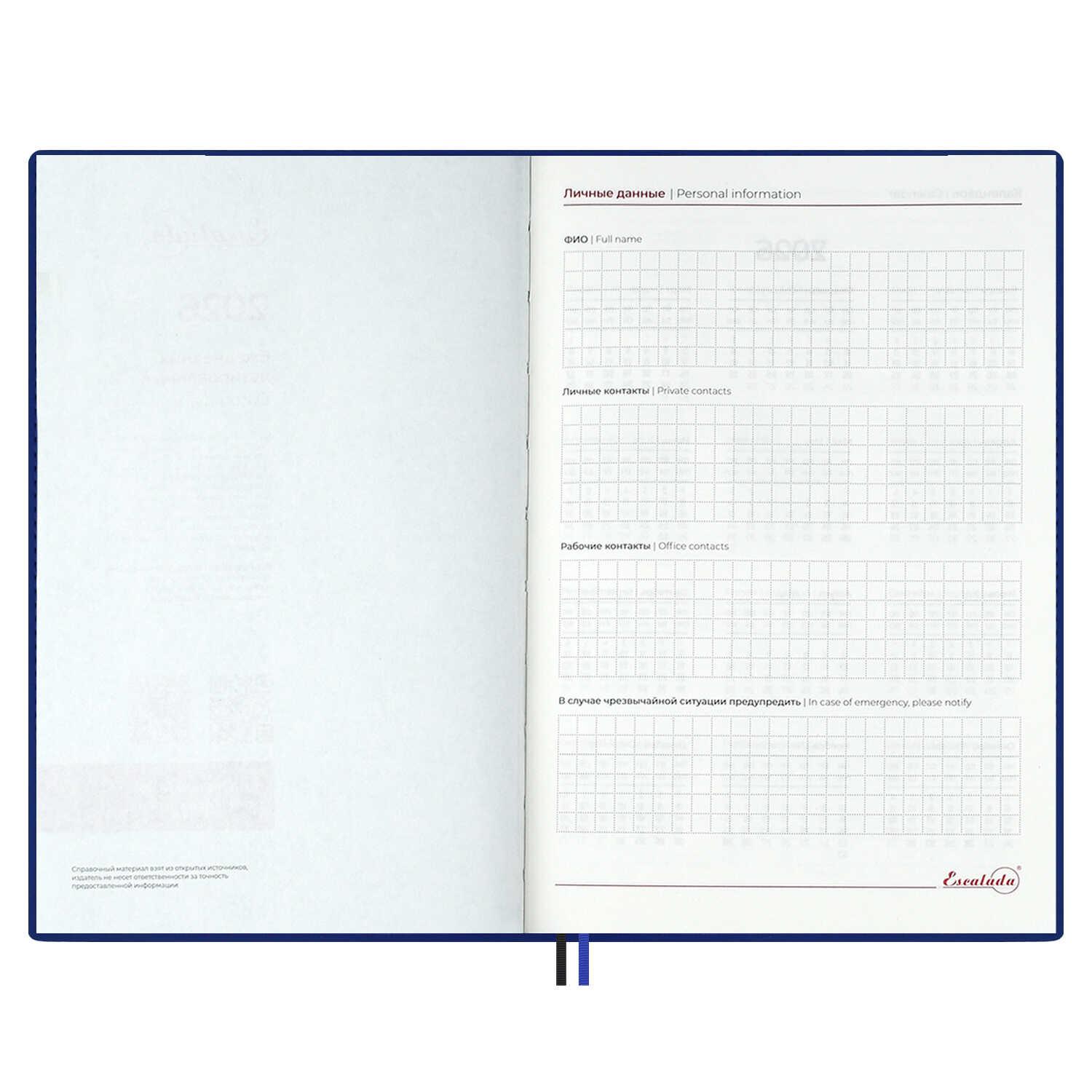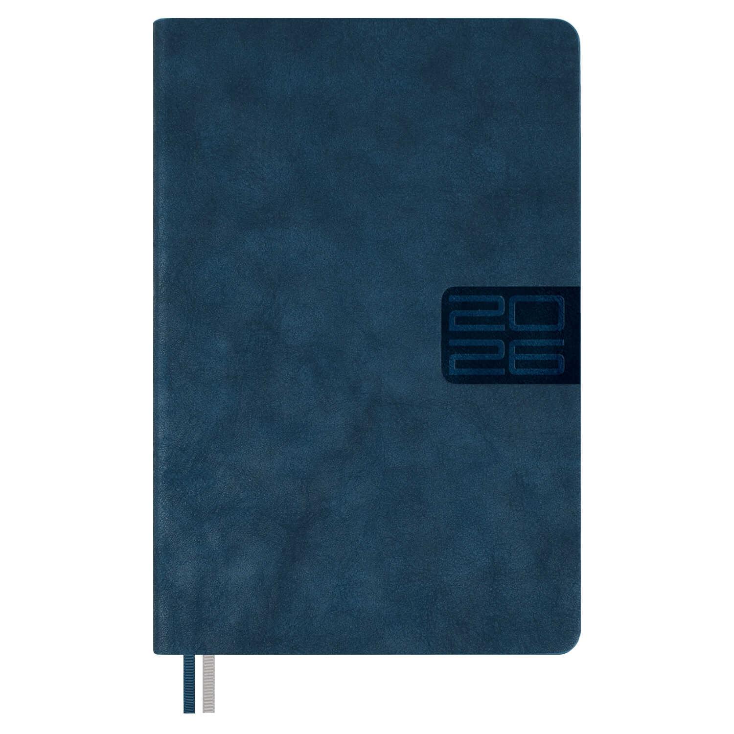 Ежедневник датированный на 2026год А5 кожзам (линейка) ( 352 страницы) (ФЕНИКС) (твердая обложка) (тиснение) Наппа синий (п/упаковка)  Ежедневник датированный 2026 ESCALADA, А5, 176 л., НАППА СИНИЙ (кожзам: 146x211 мм, твёрдый переплёт, запаянный край, материал обложки: искусственная кожа "Наппа"; декор: блинтовое тиснение; способ крепления блока: ниткошвейный; вн. блок: 176 л., кремовый офсет 70 г/м?, печать в две краски (линия), справочный материал: есть; перфорация углов блока: есть; закладка/-и: два ляссе; каптал: есть; форзац: печать пантоном; особенности: вырубка блока по месяцам; персонализация возможна: да; индивидуальная упаковка: ПЭТ-пакет) |