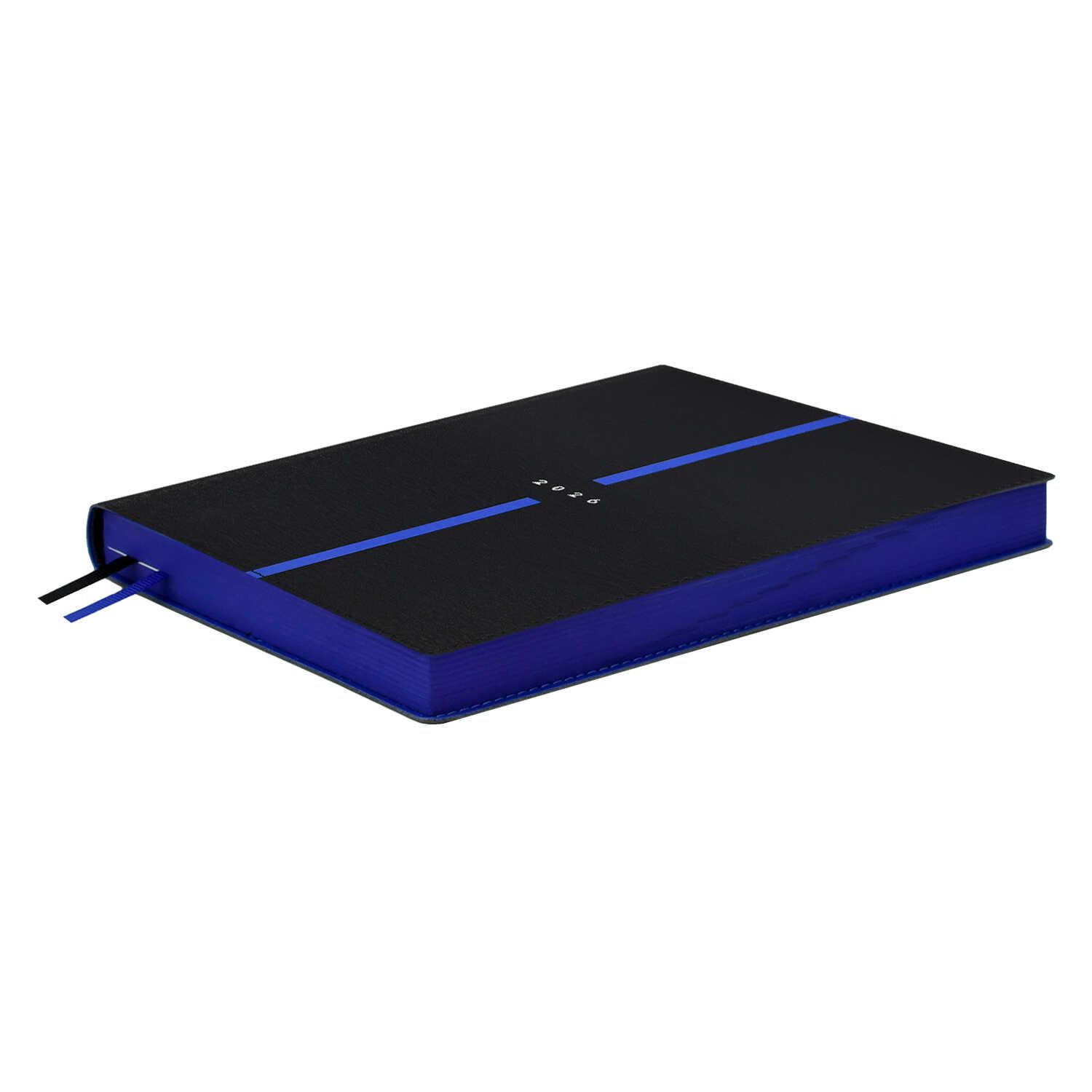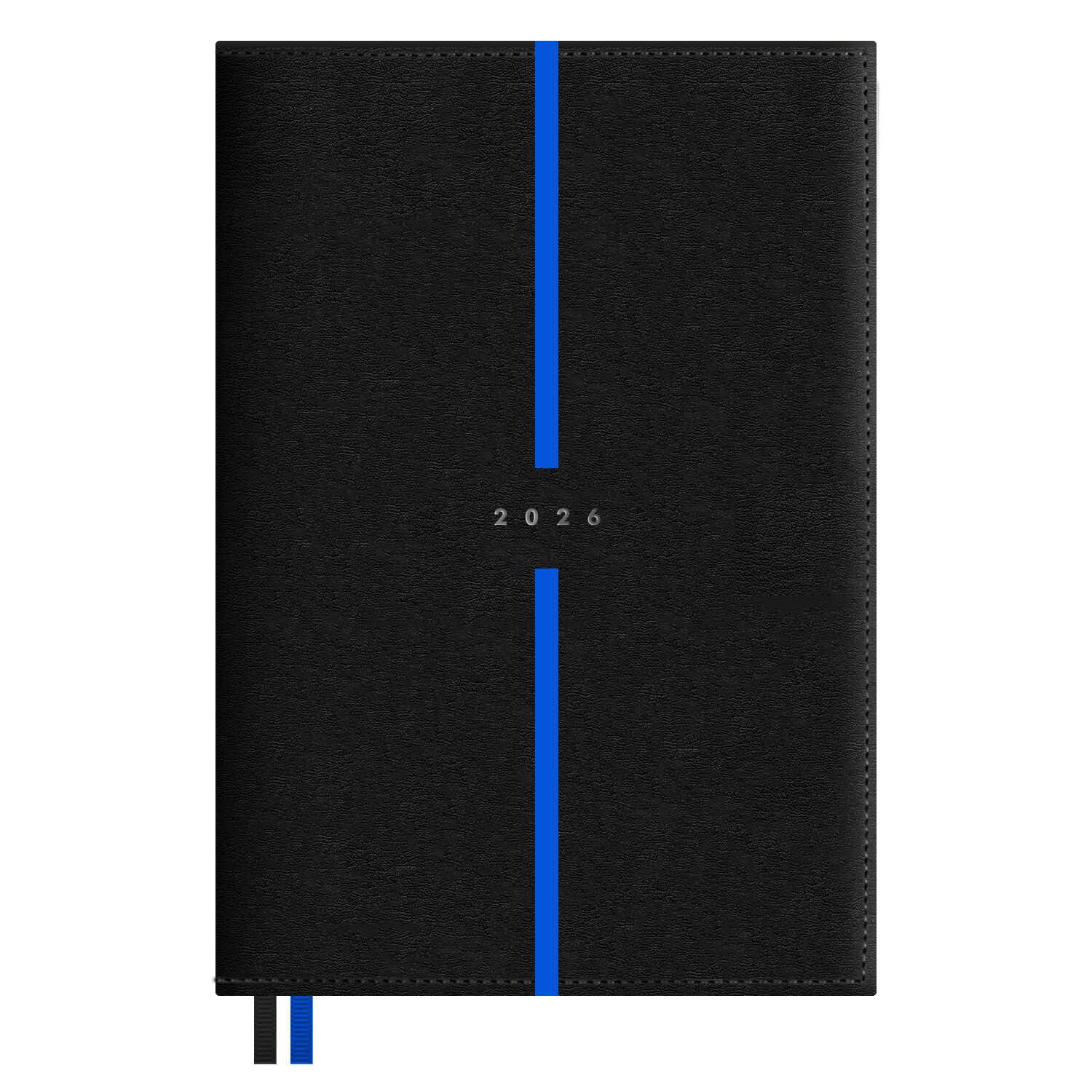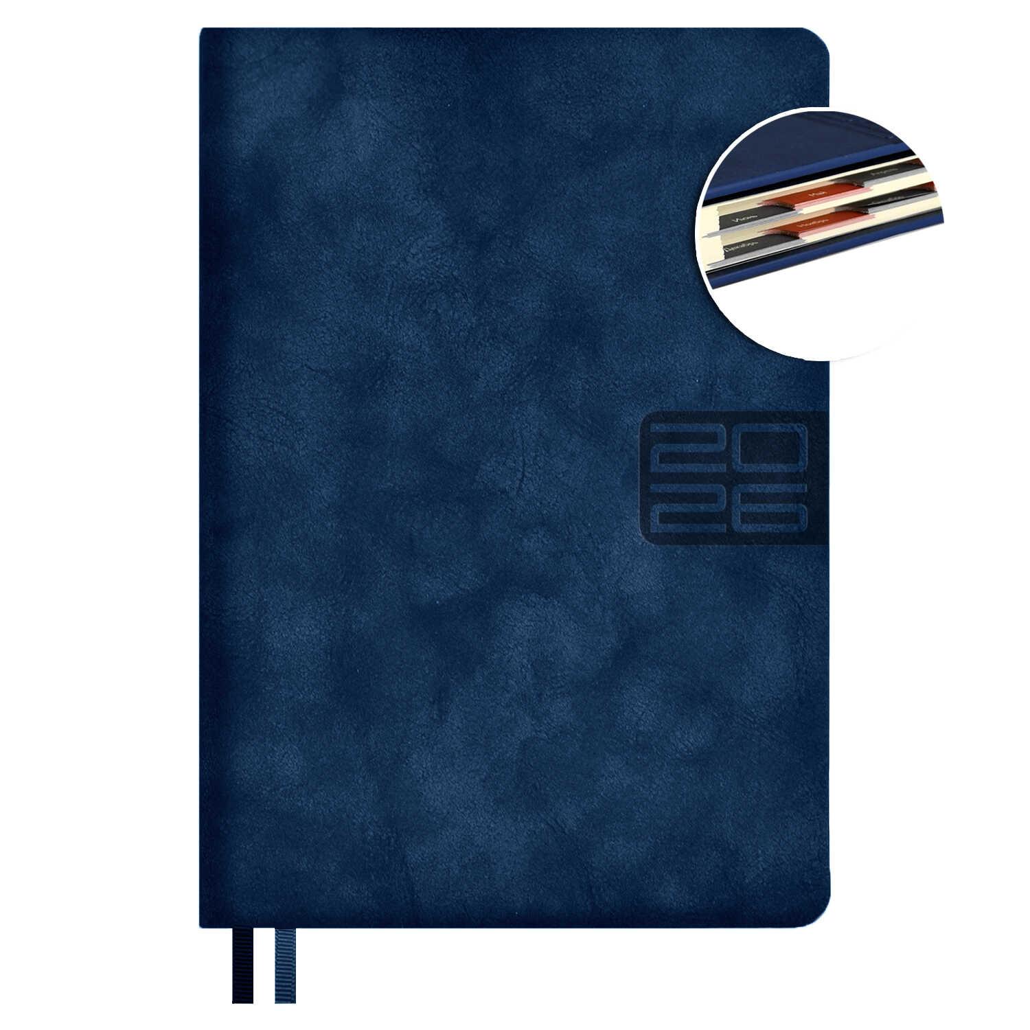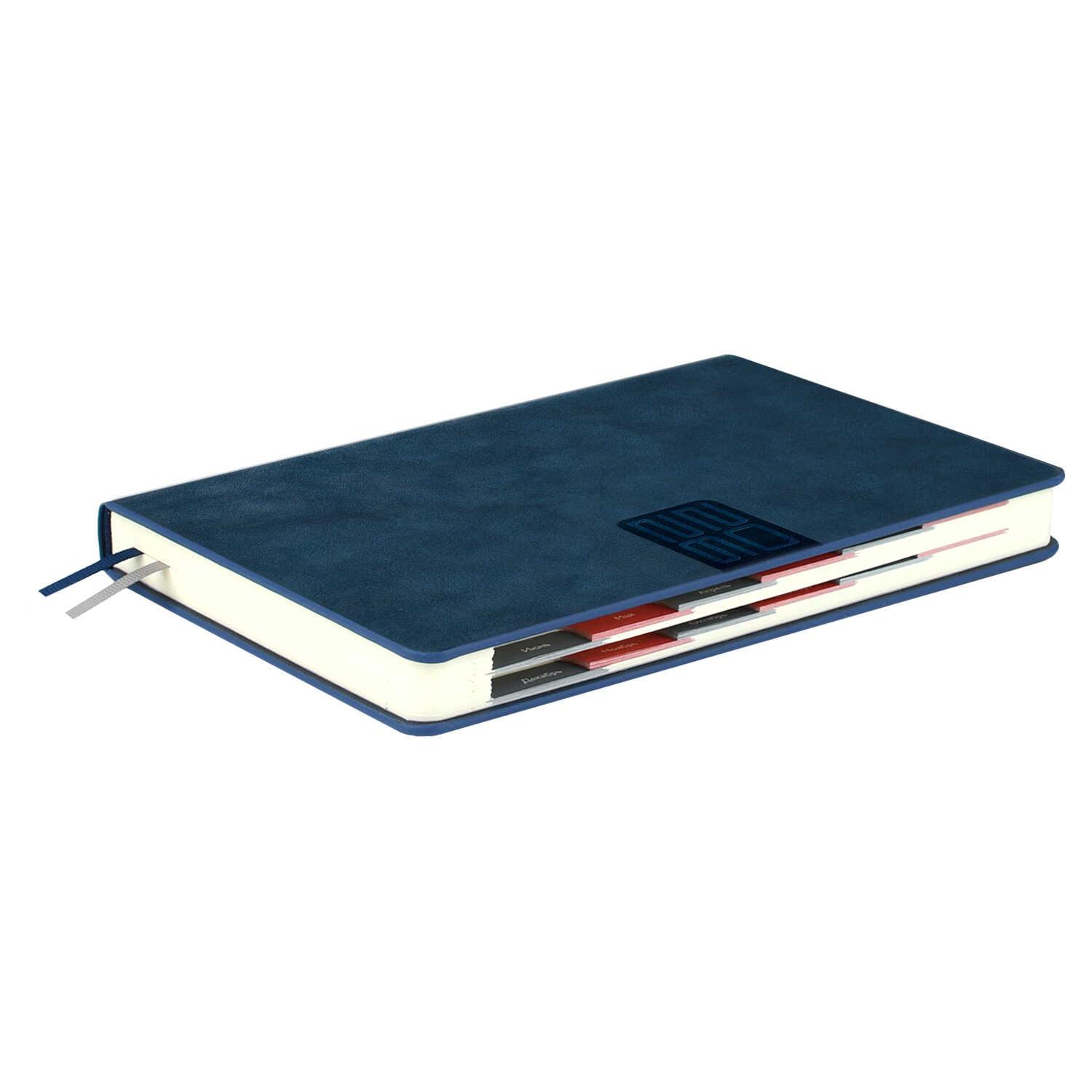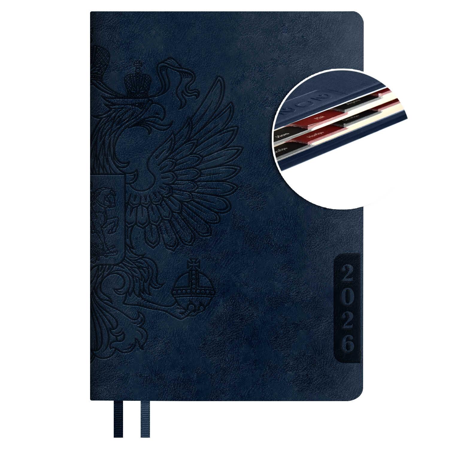 Ежедневник датированный на 2026год А5 кожзам (линейка) ( 352 страницы) (ФЕНИКС) (твердая обложка) (тиснение) Наппа синий (п/упаковка)  Ежедневник датированный 2026 ESCALADA, А5, 176 л., НАППА СИНИЙ (кожзам: 146x211 мм, твёрдый переплёт, запаянный край, материал обложки: искусственная кожа "Наппа"; декор: блинтовое тиснение; способ крепления блока: ниткошвейный; вн. блок: 176 л., кремовый офсет 70 г/м?, печать в две краски (линия), справочный материал: есть; перфорация углов блока: есть; закладка/-и: два ляссе; каптал: есть; форзац: печать пантоном; особенности: вырубка блока по месяцам; персонализация возможна: да; индивидуальная упаковка: ПЭТ-пакет) |