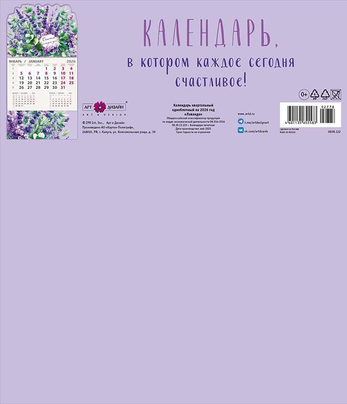 | | Календарь настенный квартальный на 2026год на 1 спирали 1 блок (Арт и Дизайн) 0609 122 29, 5*42см Лаванда (п/упаковка с европодвесом) 20  Настенный календарь - это универсальный атрибут дома и офиса. Помимо своей основной функции - сообщать текущую дату; он помогает планировать дела, подводить итоги дня, недели и месяца. Яркий и красивый календарь может служить украшением стены и оживлять дизайн помещения. Календарями пользуются бизнесмены и политики, менеджеры и преподаватели, медики, студенты и школьники. Его можно использоватьи в домашнем обиходе; отмечать события и дела, связанные с жизнью семьи, обучать ребенка ориентироваться в днях недели. Человечество изобрело календарь для того, чтобы иметь возможность планировать будущее. |