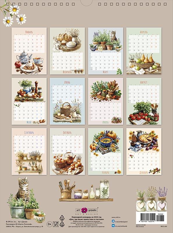| Календарь на 2026год настенный на спирали (Арт и Дизайн) 0613 244 29*39см Дом, где пахнет прян (п/упаковка с европодвесом)  Настенный календарь - это универсальный атрибут дома и офиса. Помимо своей основной функции - сообщать текущую дату; он помогает планировать дела, подводить итоги дня, недели и месяца. Яркий и красивый календарь может служить украшением стены и оживлять дизайн помещения. Календарями пользуются бизнесмены и политики, менеджеры и преподаватели, медики, студенты и школьники. Его можно использоватьи в домашнем обиходе; отмечать события и дела, связанные с жизнью семьи, обучать ребенка ориентироваться в днях недели. Человечество изобрело календарь для того, чтобы иметь возможность планировать будущее. |