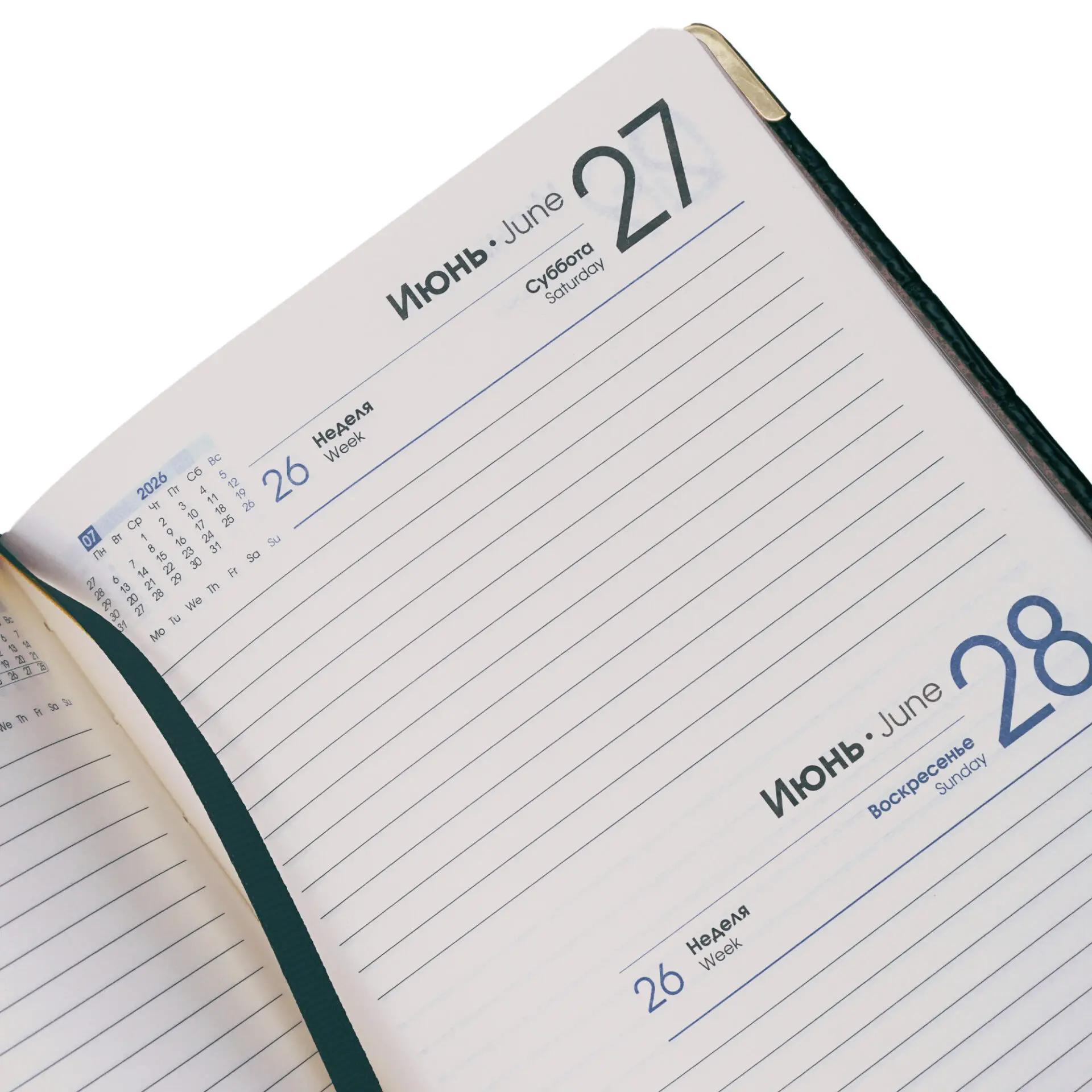 | Ежедневник датированный на 2026год А5 кожзам (линейка) ( 352 страницы) (ЭКСМО) (твёрдая обложка) Status тёмно-зелёный (п/упаковка)Марка/Производитель: ЭКСМО  Золоченый торец блока и металические скругленные углы изделия подчеркивают неповторимый стиль. Красивый дизайн и удобный формат ежедневника делают его достойным аксессуаром. Листаж 176 л., 2 ляссе, датированный блок. Календарь 2026-2027 год Перфорации углов блока - НЕТ |