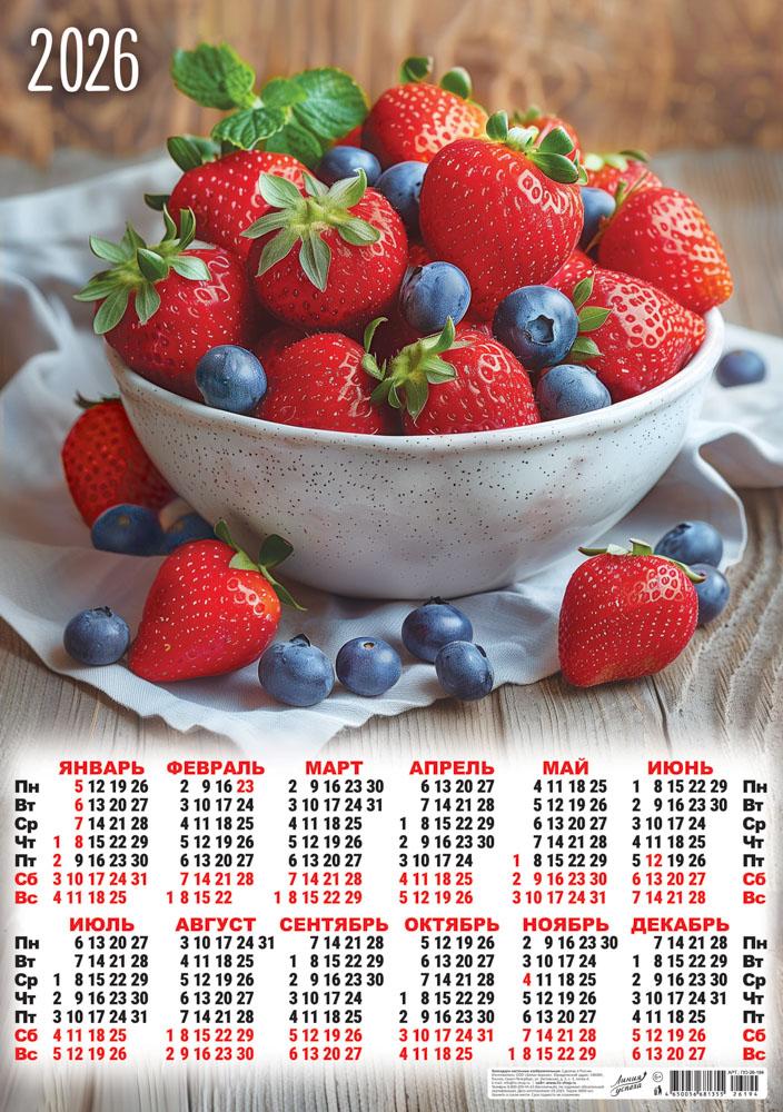 | Календарь на 2026год настенный листовой (плакат) А2 (ФОНТАНКА) ПО-26-194 Натюрморт Сочная клубника (без лака)  Настенный календарь - это универсальный атрибут дома и офиса. Помимо своей основной функции - сообщать текущую дату; он помогает планировать дела, подводить итоги дня, недели и месяца. Яркий и красивый календарь может служить украшением стены и оживлять дизайн помещения. Календарями пользуются бизнесмены и политики, менеджеры и преподаватели, медики, студенты и школьники. Его можно использоватьи в домашнем обиходе; отмечать события и дела, связанные с жизнью семьи, обучать ребенка ориентироваться в днях недели. Человечество изобрело календарь для того, чтобы иметь возможность планировать будущее. Формат А2 (420х594мм). Бумага мелованная 80 г/м2, без лака. |