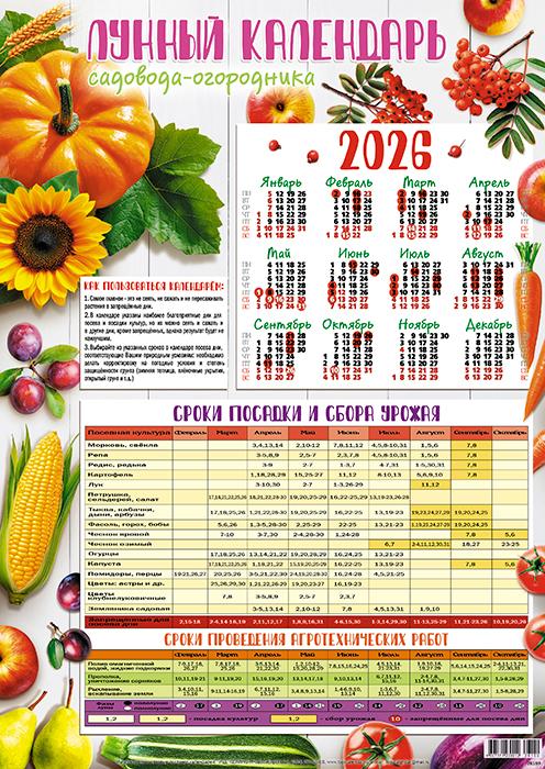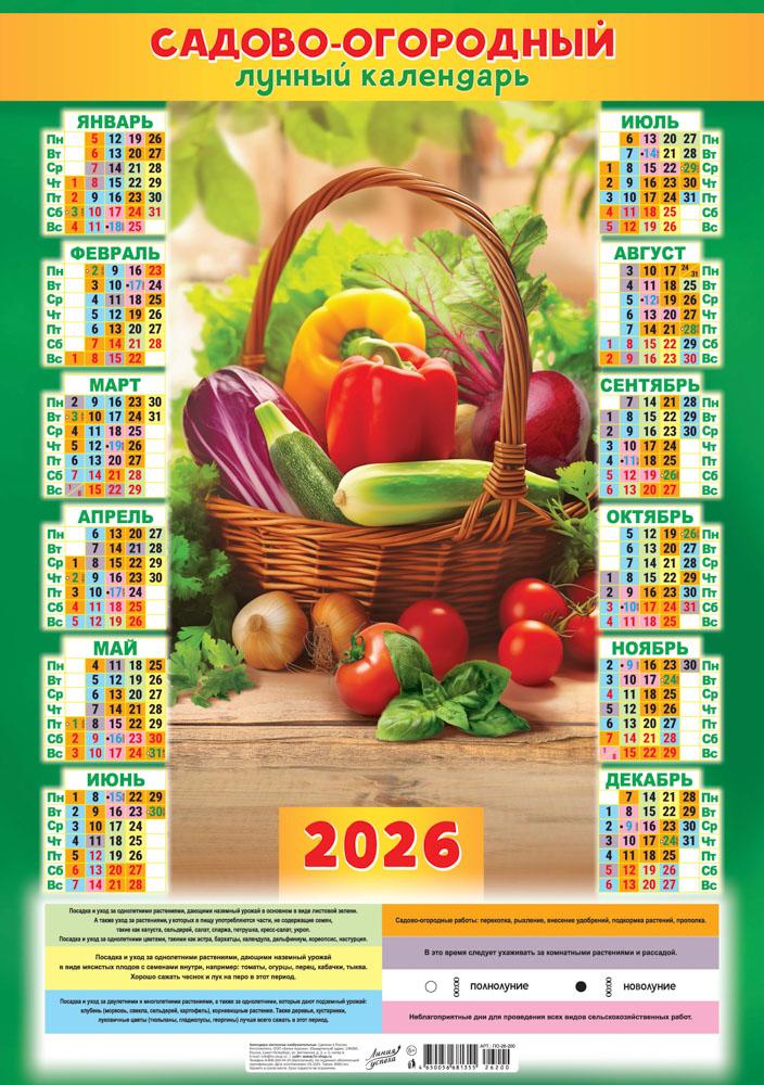 | Календарь на 2026год настенный листовой (плакат) А2 (ФОНТАНКА) ПО-26-201 Сад -огород Лунный Дач набор (без лака)  Настенный календарь - это универсальный атрибут дома и офиса. Помимо своей основной функции - сообщать текущую дату; он помогает планировать дела, подводить итоги дня, недели и месяца. Яркий и красивый календарь может служить украшением стены и оживлять дизайн помещения. Календарями пользуются бизнесмены и политики, менеджеры и преподаватели, медики, студенты и школьники. Его можно использоватьи в домашнем обиходе; отмечать события и дела, связанные с жизнью семьи, обучать ребенка ориентироваться в днях недели. Человечество изобрело календарь для того, чтобы иметь возможность планировать будущее. Формат А2 (420х594мм). Бумага мелованная 80 г/м2, без лака. |