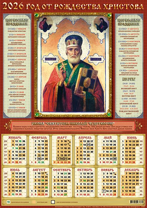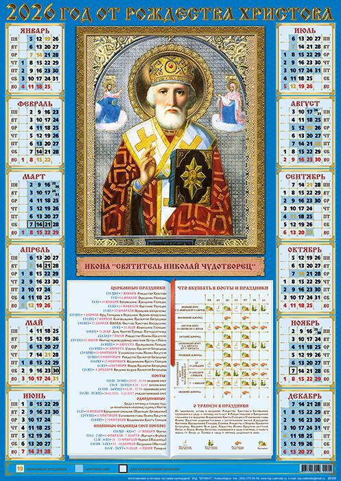 | Календарь на 2026год настенный листовой (плакат) А2 (КЕЛИНС) 26103 Иконы Николай Чудотворец(зимний)(лак)  Настенный календарь - это универсальный атрибут дома и офиса. Помимо своей основной функции - сообщать текущую дату; он помогает планировать дела, подводить итоги дня, недели и месяца. Яркий и красивый календарь может служить украшением стены и оживлять дизайн помещения. Календарями пользуются бизнесмены и политики, менеджеры и преподаватели, медики, студенты и школьники. Его можно использоватьи в домашнем обиходе; отмечать события и дела, связанные с жизнью семьи, обучать ребенка ориентироваться в днях недели. Человечество изобрело календарь для того, чтобы иметь возможность планировать будущее. |