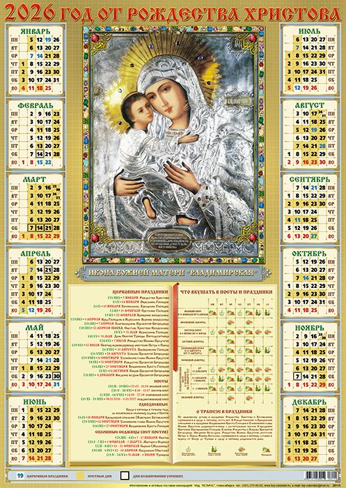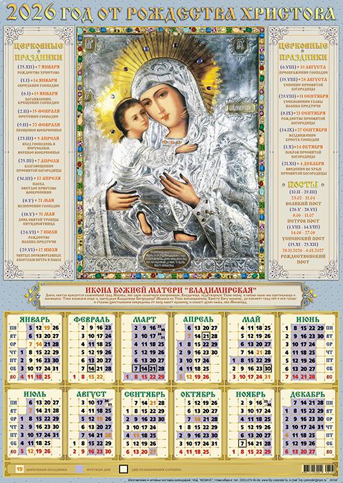 | Календарь на 2026год настенный листовой (плакат) А3 (ФОНТАНКА) ПМ-26-201 Иконы Владимирская Бож Матери (без лака)  Формат А3 (297х420мм). Бумага мелованная 80 г/м2, без лака. Настенный календарь - это универсальный атрибут дома и офиса. Помимо своей основной функции - сообщать текущую дату; он помогает планировать дела, подводить итоги дня, недели и месяца. Яркий и красивый календарь может служить украшением стены и оживлять дизайн помещения. Календарями пользуются бизнесмены и политики, менеджеры и преподаватели, медики, студенты и школьники. Его можно использоватьи в домашнем обиходе; отмечать события и дела, связанные с жизнью семьи, обучать ребенка ориентироваться в днях недели. Человечество изобрело календарь для того, чтобы иметь возможность планировать будущее. |