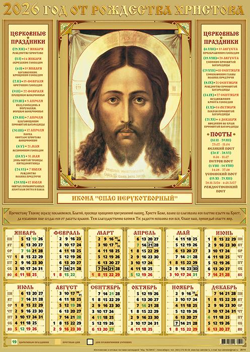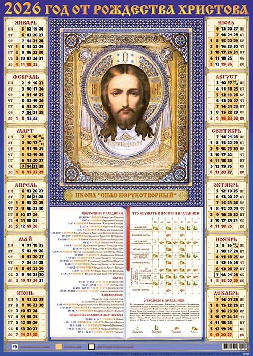 | Календарь на 2026год настенный листовой (плакат) А3 (ФОНТАНКА) ПМ-26-216 Иконы Спас Нерукотворный (без лака)  Настенный календарь - это универсальный атрибут дома и офиса. Помимо своей основной функции - сообщать текущую дату; он помогает планировать дела, подводить итоги дня, недели и месяца. Яркий и красивый календарь может служить украшением стены и оживлять дизайн помещения. Календарями пользуются бизнесмены и политики, менеджеры и преподаватели, медики, студенты и школьники. Его можно использоватьи в домашнем обиходе; отмечать события и дела, связанные с жизнью семьи, обучать ребенка ориентироваться в днях недели. Человечество изобрело календарь для того, чтобы иметь возможность планировать будущее. |