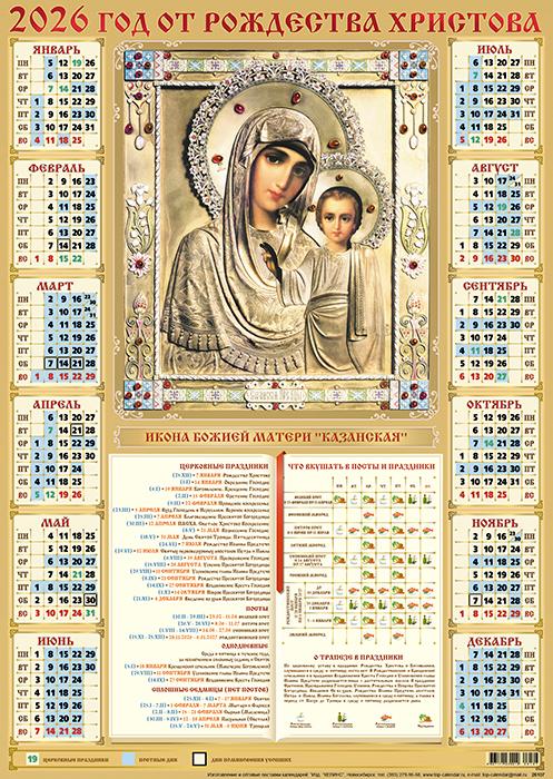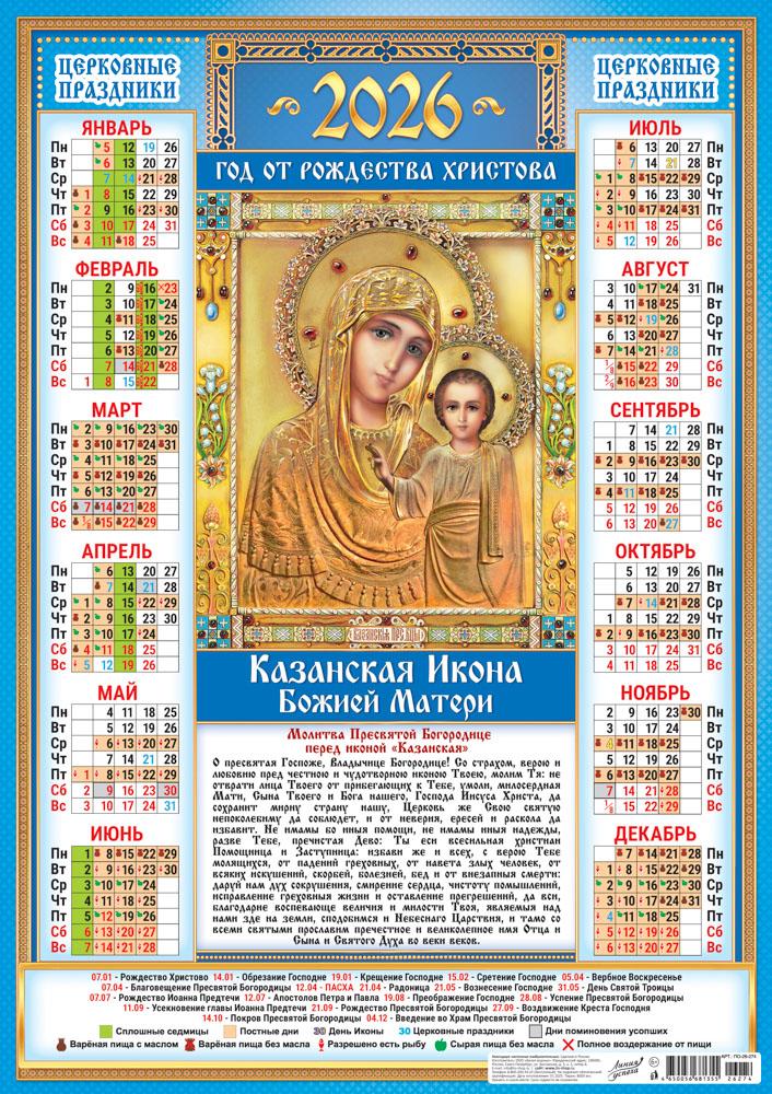 | Календарь на 2026год настенный листовой (плакат) А2 (ФОНТАНКА) ПО-26-274 Иконы Казанской Божьей Матери (без лака)  Формат А2 (420х594мм). Бумага мелованная 80 г/м2, без лака. |