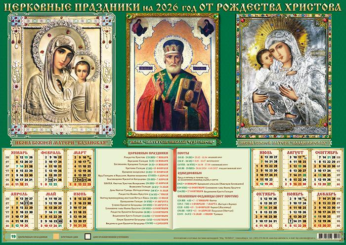 | | Календарь на 2026год настенный листовой (плакат) А2 (КЕЛИНС) 26110 Иконы Триптих(зеленый)(лак)  Настенный календарь - это универсальный атрибут дома и офиса. Помимо своей основной функции - сообщать текущую дату; он помогает планировать дела, подводить итоги дня, недели и месяца. Яркий и красивый календарь может служить украшением стены и оживлять дизайн помещения. Календарями пользуются бизнесмены и политики, менеджеры и преподаватели, медики, студенты и школьники. Его можно использоватьи в домашнем обиходе; отмечать события и дела, связанные с жизнью семьи, обучать ребенка ориентироваться в днях недели. Человечество изобрело календарь для того, чтобы иметь возможность планировать будущее. |