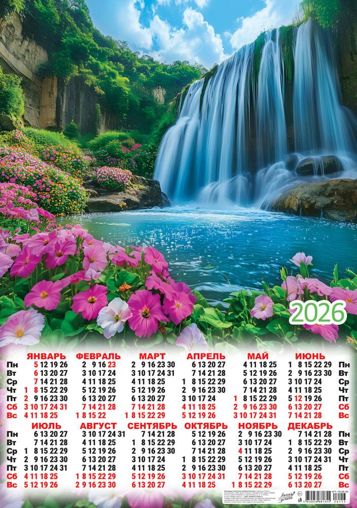 | | Календарь на 2026год настенный листовой (плакат) А2 (ФОНТАНКА) ПО-26-153 Водопады Цветущий водопад (без лака)  Формат А2 (420х594мм). Бумага мелованная 80 г/м2, без лака. |