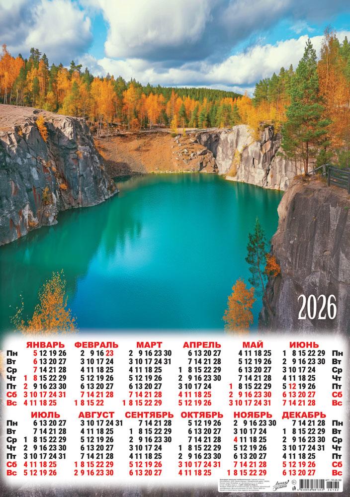 | Календарь на 2026год настенный листовой (плакат) А2 (ФОНТАНКА) ПО-26-161 Природа Южный берег (без лака)  Формат А2 (420х594мм). Бумага мелованная 80 г/м2, без лака. |