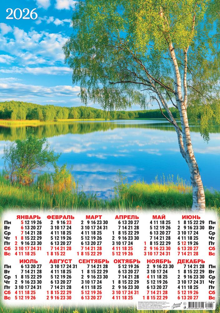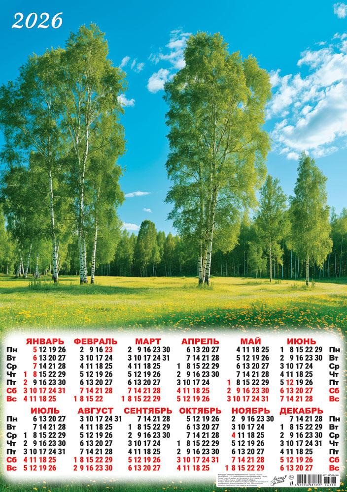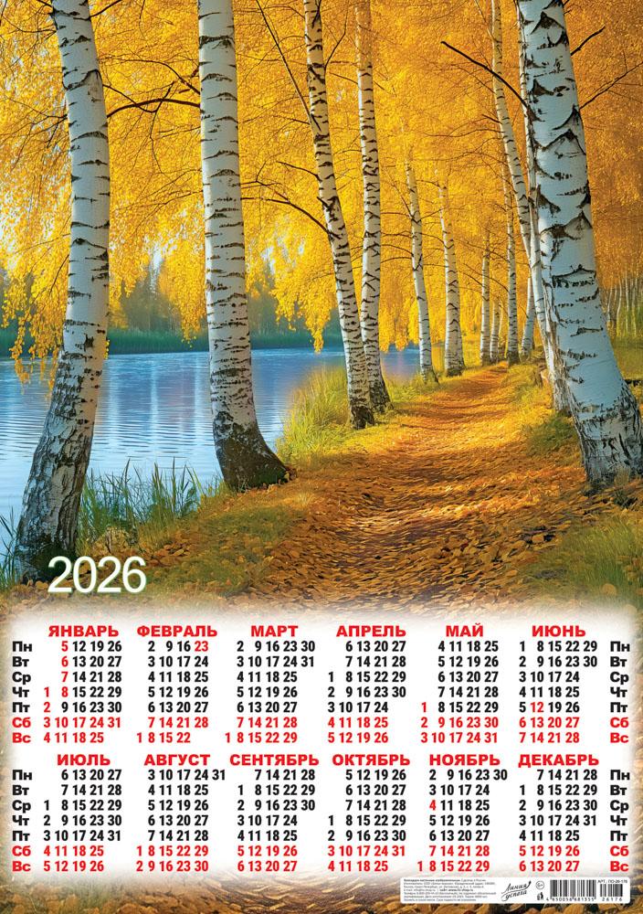 | Календарь на 2026год настенный листовой (плакат) А2 (ФОНТАНКА) ПО-26-168 Природа Стройные березки (без лака)  Формат А2 (420х594мм). Бумага мелованная 80 г/м2, без лака. |