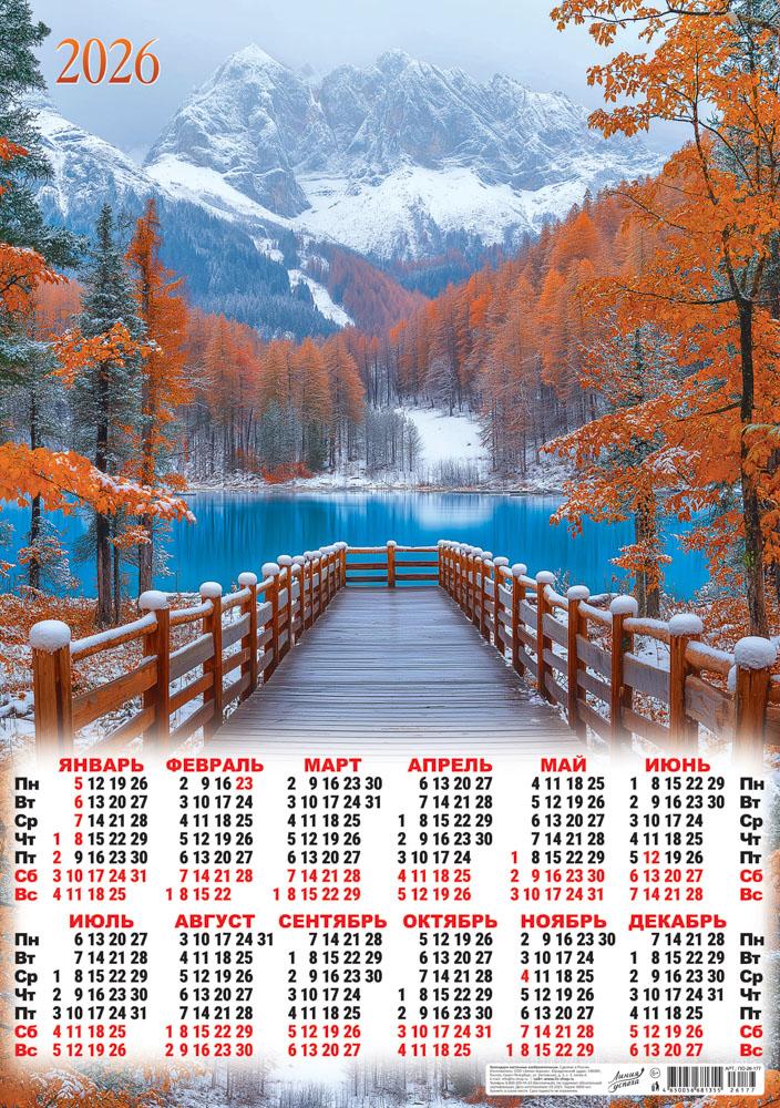 | Календарь на 2026год настенный листовой (плакат) А3 (ФОНТАНКА) ПМ-26-131 Горы Река (без лака)  Настенный календарь - это универсальный атрибут дома и офиса. Помимо своей основной функции - сообщать текущую дату; он помогает планировать дела, подводить итоги дня, недели и месяца. Яркий и красивый календарь может служить украшением стены и оживлять дизайн помещения. Календарями пользуются бизнесмены и политики, менеджеры и преподаватели, медики, студенты и школьники. Его можно использоватьи в домашнем обиходе; отмечать события и дела, связанные с жизнью семьи, обучать ребенка ориентироваться в днях недели. Человечество изобрело календарь для того, чтобы иметь возможность планировать будущее. Формат А3 (297х420мм). Бумага мелованная 80 г/м2, без лака. |