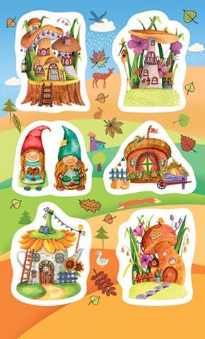 | Наклейка А6 (МИР ОТКРЫТОК) 0-11-639А Домики сказочные осенью