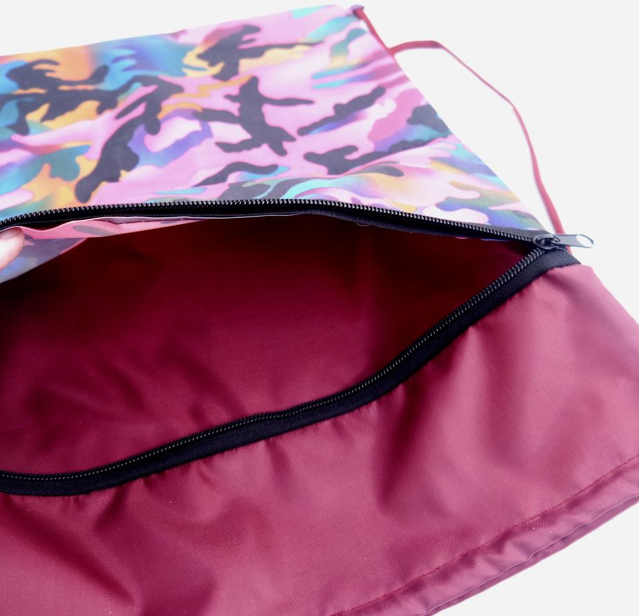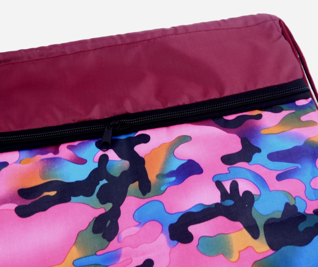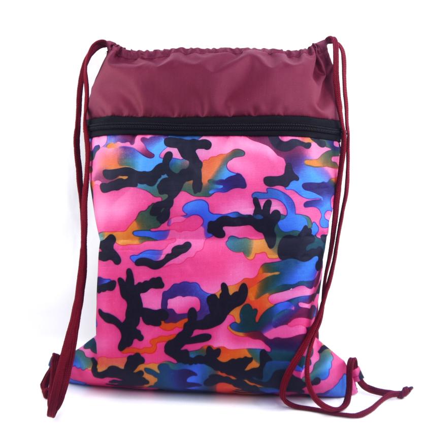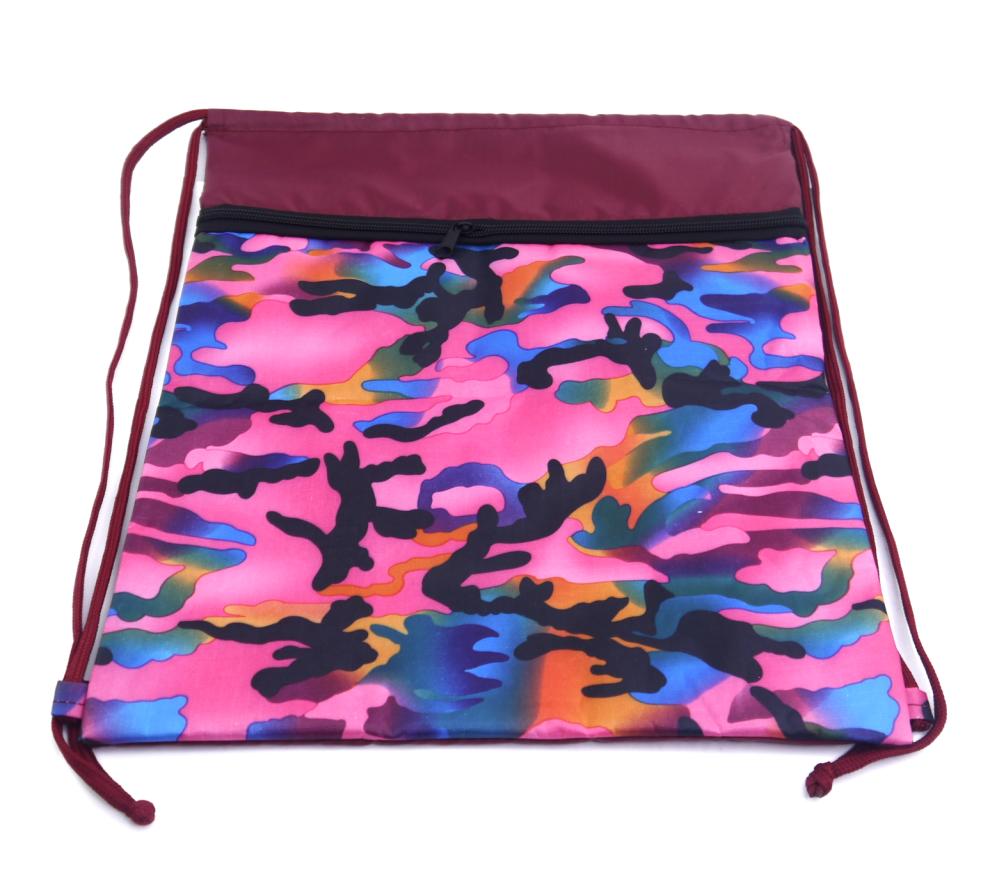 | Сумка-мешок для сменной обуви (СИБИРСКАЯ МЕДВЕДИЦА) 32*40см 2 отделения нейлон Камуфляж (п/упаковка)  Сумка для сменной обуви 32х40 см "Камуфляж розовый" с карманом на молнии |
