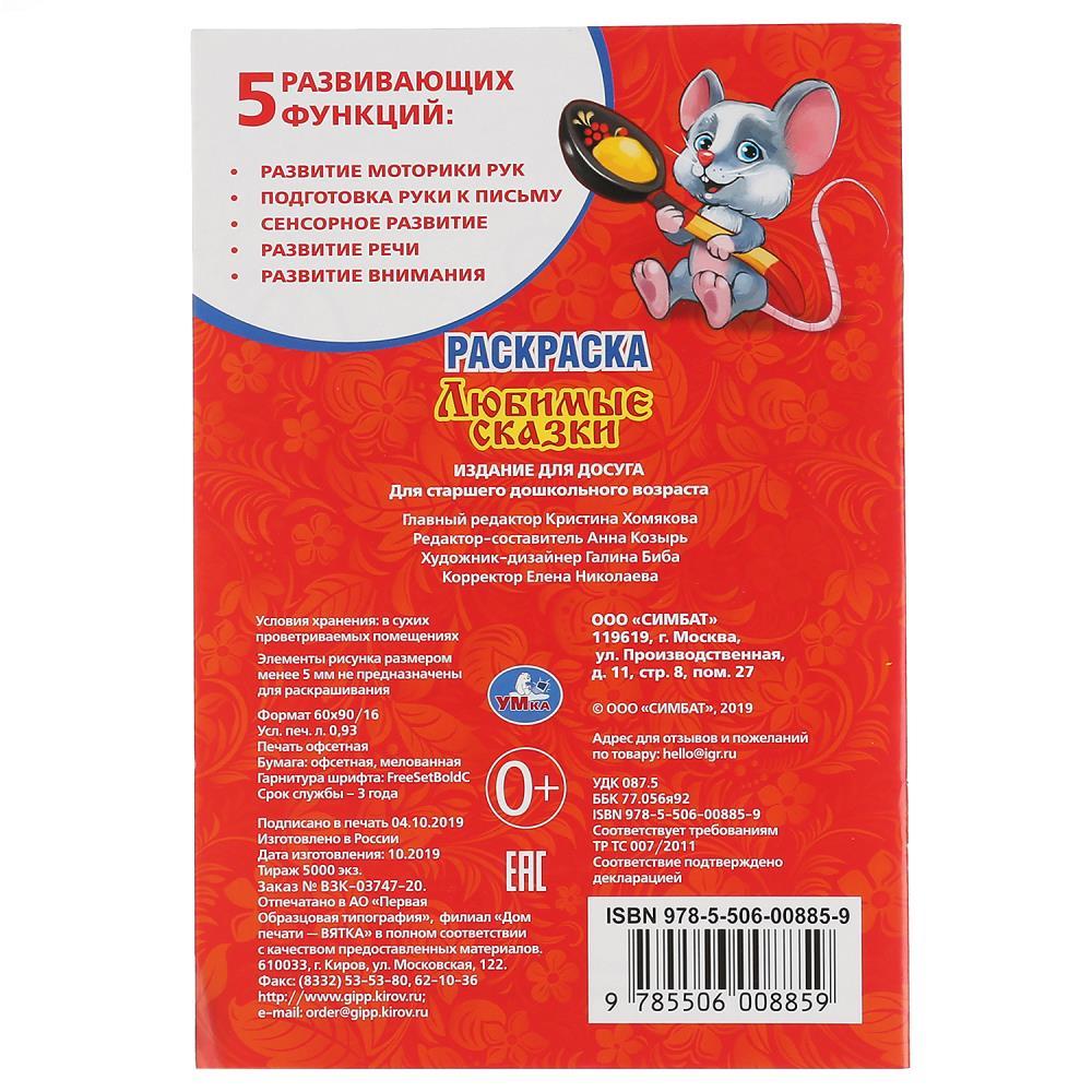 | | Раскраска А5 (мелованная обложка) УМКА ПервРаскр Любимые сказки ( 16 страниц)Марка/Производитель: УМКА  Раскраска «Любимые сказки» из серии «Первая раскраска» ТМ «УМка» приглашает детей порисовать: - картинки для раскрашивания тщательно прорисованы (жирный контур) - известные сказки - разнообразные и интересные иллюстрации Эта занимательная раскраска по мотивам русских народных сказок не только скрасит досуг ребёнка, но и поможет ему подготовить руку к письму. Благодаря удобному формату раскраску можно взять с собой в дорогу. Игровые занятия с раскраской ТМ «УМка» способствуют развитию: - моторики - внимательности - творческого мышления - усидчивости Объём: 16 стр. |