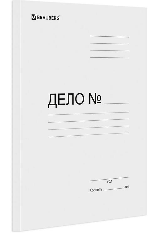 Папка Скоросшиватель для бумаг картонный "Дело" белый (плотность 300г/кв м) BRAUBERG  Скоросшиватель BRAUBERG - надежный вариант для систематизации и продолжительного хранения деловой, технической, юридической документации, архивных данных. В нем удобно хранить анкеты и данные сотрудников или клиентов, отчеты и заявления. Подходит для документов формата А4 и меньше. Изготовлен из белого немелованного картона плотностью 300 г/м2. Оснащен металлическим механизмом сшивания. Вмещает до 200 листов стандартной плотности. Имеет надпись "Дело №" на обложке. Поставляется в гофрокоробе. Скоросшиватель BRAUBERG поможет организовать деятельность сотрудников в офисе |