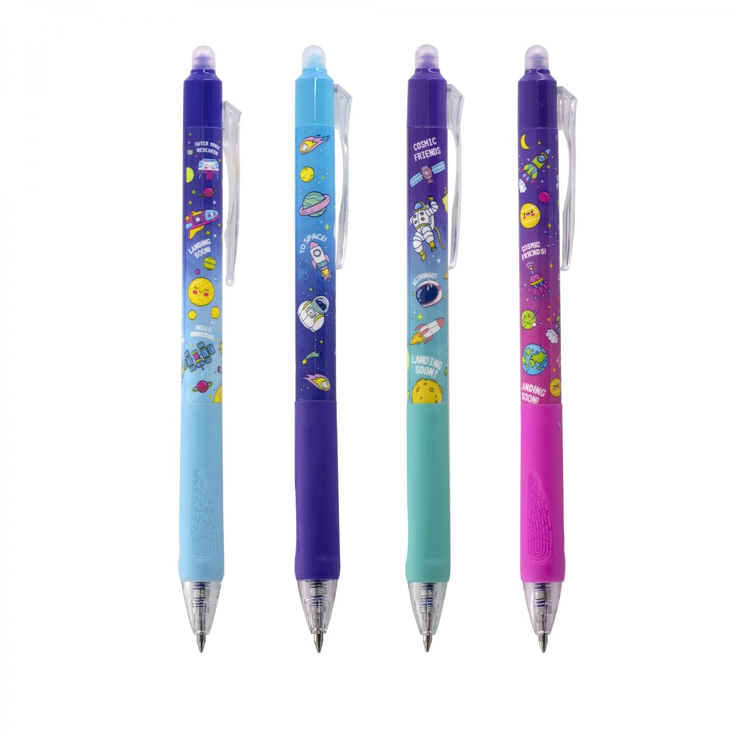 | Ручка "пишет-стирает" с ластиком автоматическая YALONG 0, 5мм (грип-зона из резины) Космопланеты (цветной корпус) синяя Ассорти  Надписи, сделанные такой ручкой, исчезают под воздействием температуры. Процедуру обессвечивания написанного текста можно проделать любым способом, нагревая лист бумаги выше +60С, например, зажигалкой, феном, любым горячим. Написанное можно восстановить. При температуре наже -18С происходит восстановление пигментного состава чернил до первоначальнгог уровня и написанное проявляется. Данный тип ручек максимально приближен к простому карандашу. Чернила ложатся на бумагу, не впитываясь в её структуру, благодаря чему надписи можно удалить с помощью обыкновенного ластика. Стержень ручки заправлен уникальными обесцвечивающимися термо-чернилами. Необходимо потереть надпись резинкой, расположенной на конце ручки и она исчезнет. Ручка не повреждает структуру бумаги, делая исправления незаметными. |