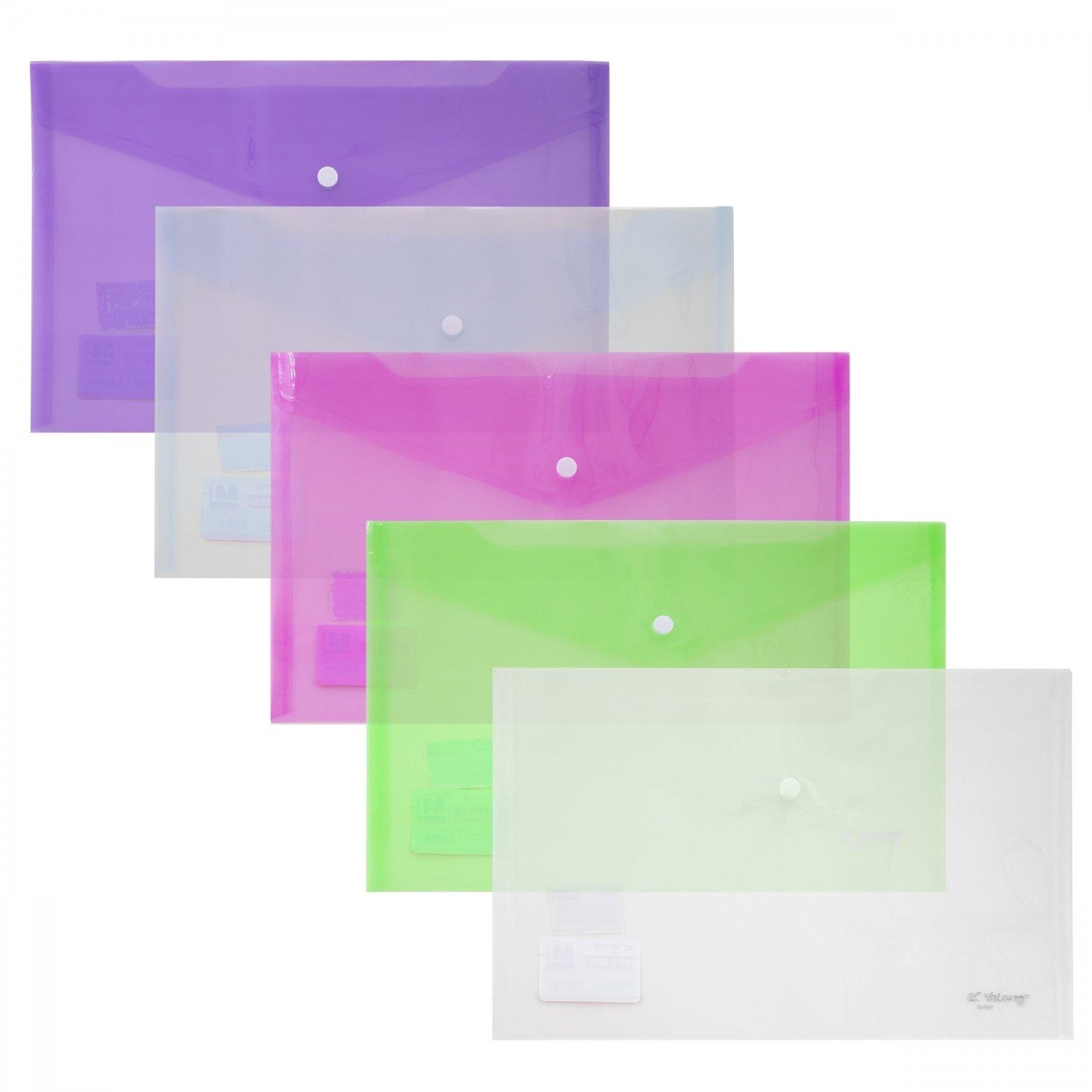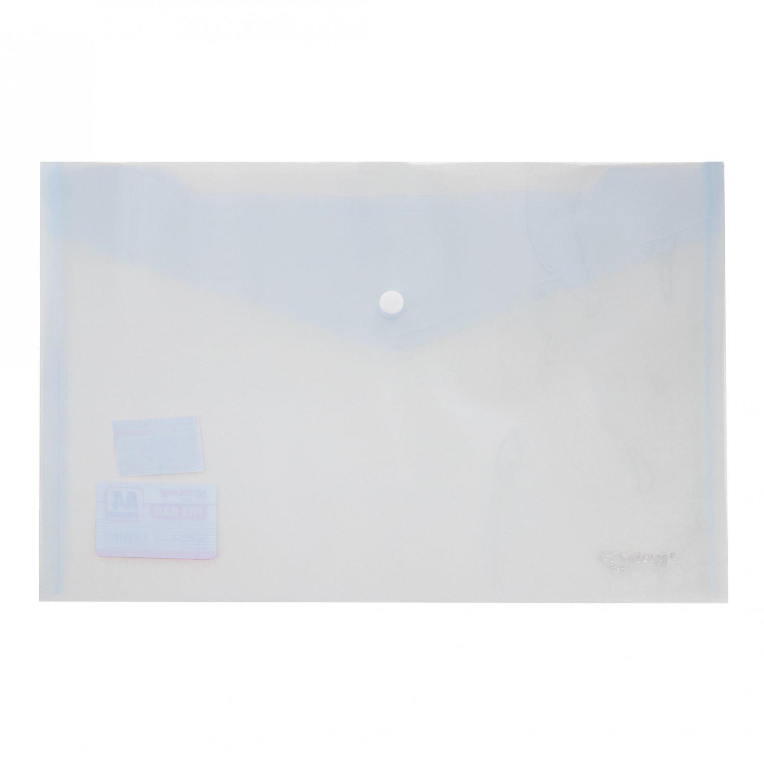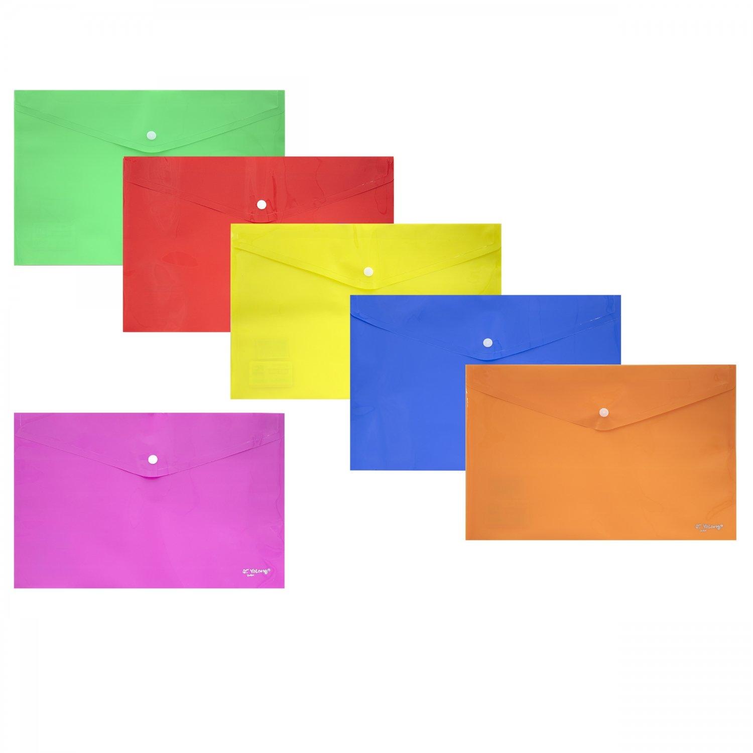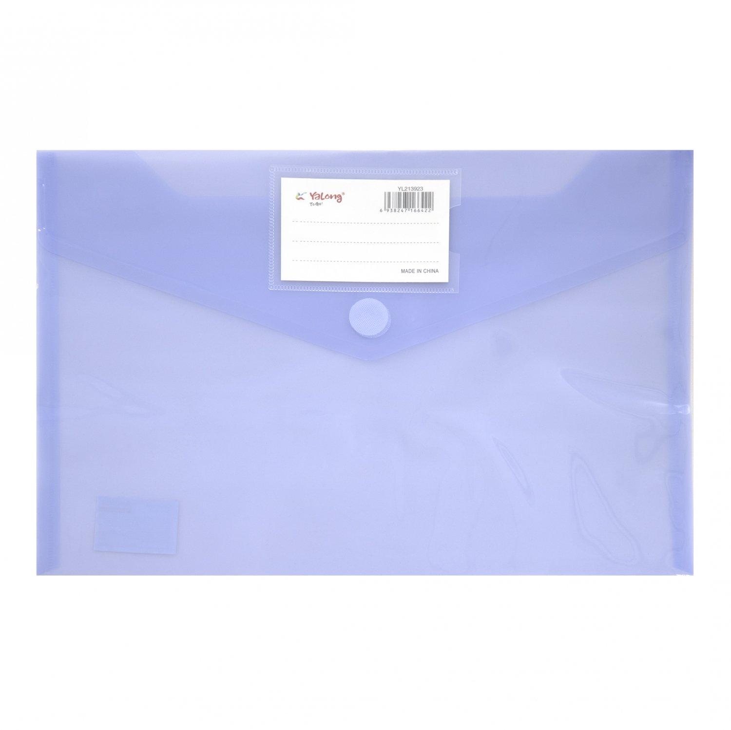 | Папка на кнопке А4 (230*330) YALONG 140мк пласт прозрачная Ассорти  Папка-конверт закрывается клапаном с кнопкой. Подходит как для хранения, так и транспортировки документов, предохраняя их от загрязнения и смятия. Папка-конверт на кнопке Yalong, A4, 230х330 мм, 140 мкм, ассорти в коробе, прозрачная |