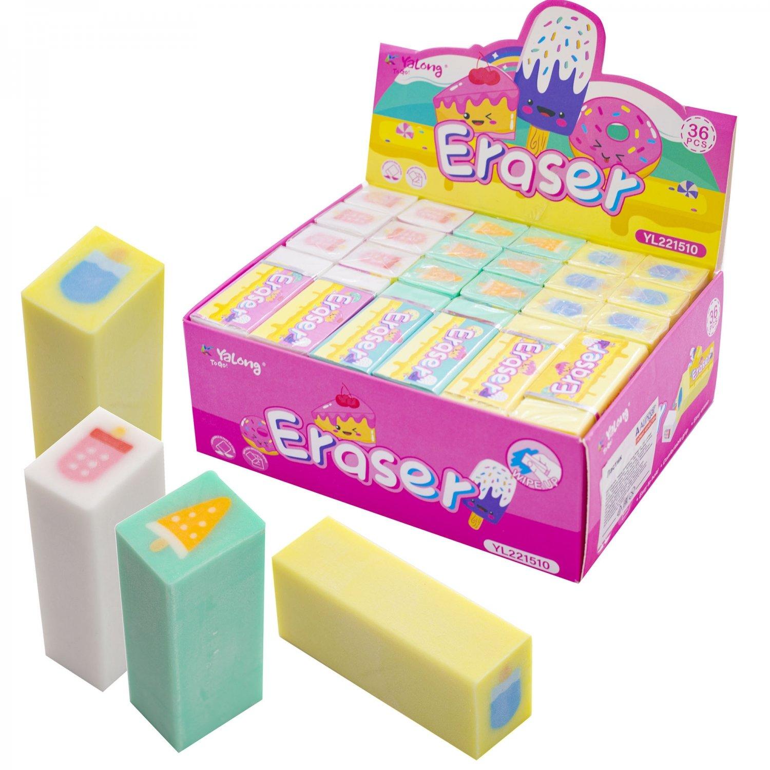 | Ластик YALONG YL191521-1 (синтетический каучук) (прямоугольной формы) Леден 40*25*12мм (п/упаковка) Ассорти  Ластик Yalong, синтетический каучук, прямоугольный, цвет ассорти, 40*25*12 мм, "Леденцы" |