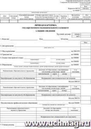 Личная карточка гос. (муниципального) служащего Форма №Т-2 ГС (МС) (КЖ-1553) Издательство: Учитель